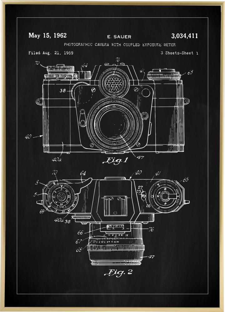 Patenttegning - Kamera I - Svart (13x18 cm)