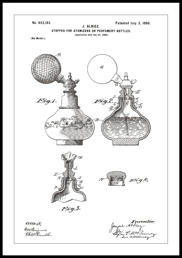 Patenttegning - Parfymeflaske A - Hvit Plakat (21x29.7 cm (A4))