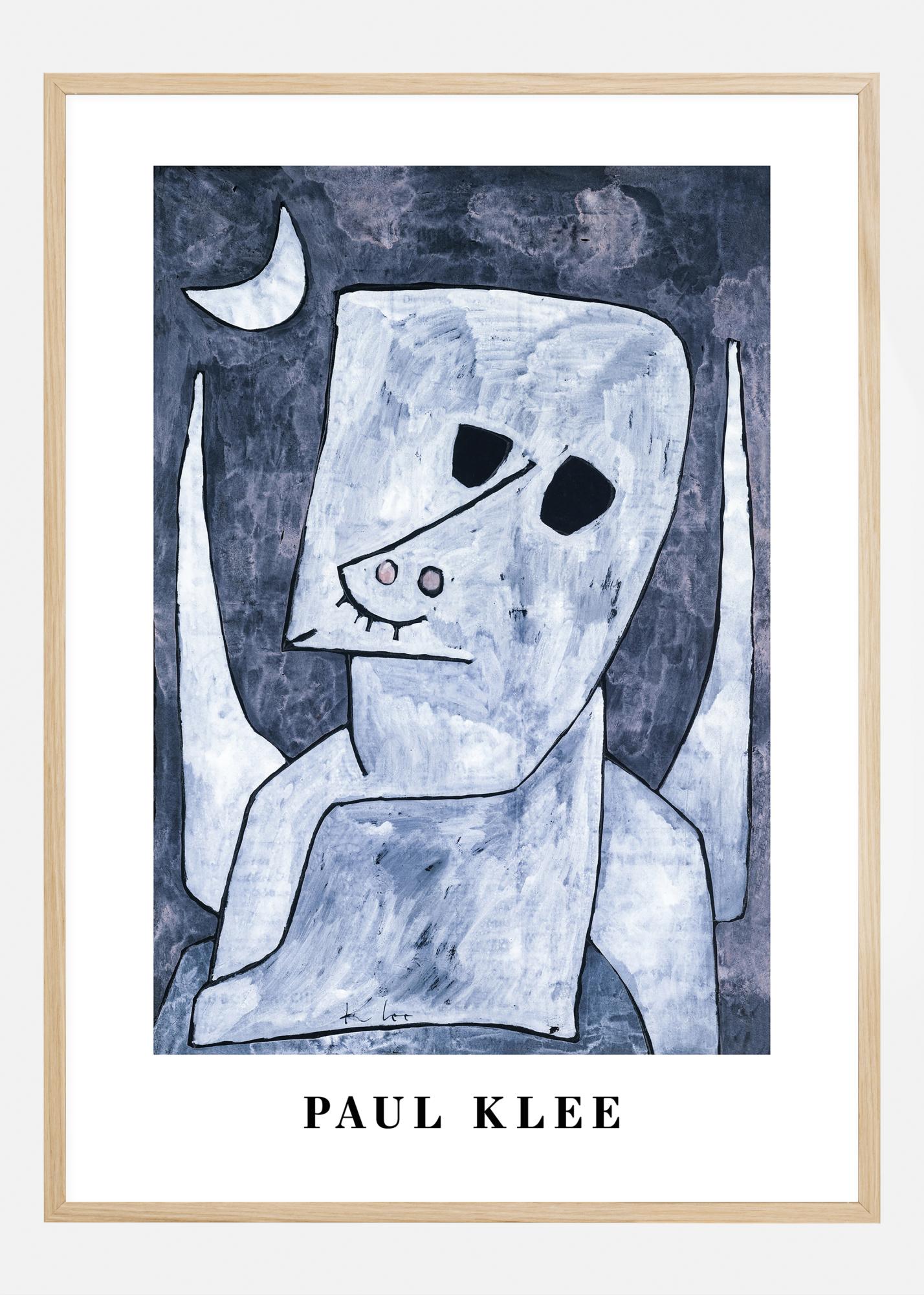 Klees kjente interesse for det overnaturlige og metafysiske fremtrer tydelig i denne plakaten. En tynn månesigd henger i bakgrunnen, noe som legger til et element av kosmisk mystikk og kompletterer den sentrale figurens blikk og positur. Denne trykken er ikke bare en hyllest til Klees unike stil, men tilbyr også en samtalestarter som vil vekke nysgjerrighet og utdype hvert rom den plasseres i. Dens mangfold av blå toner, fra himmelsk lys til nesten svart, gjør dette til en allsidig og tankevekkende interiørdetalj.