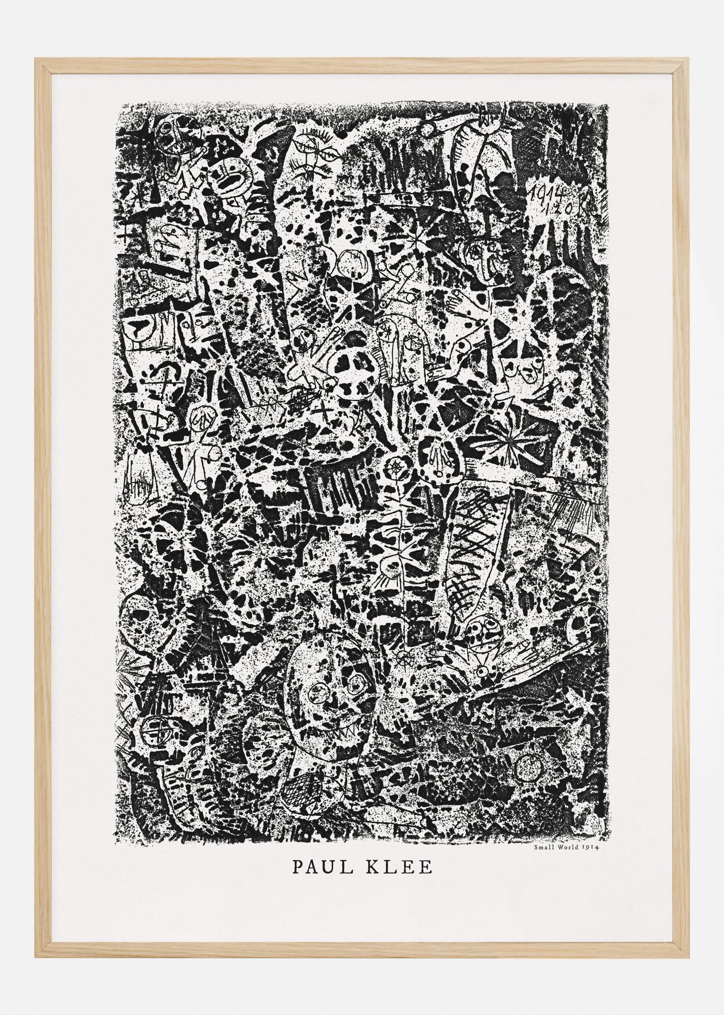 Denne posteren avbilder Paul Klees "Small World" fra 1914 og er et fremstående eksempel på kunstnerens tidlige utforsking av grafiske mønstre og symboler. Dette trykket kjennetegnes av dets detaljrike og intrikate linjespill som sammenflettet skaper en dyp og kompleks billedverden. Det er en perfekt plakat for den som ønsker å innføre et element av kunsthistorisk betydning og intellektuell stimulans i sitt hjem eller arbeidsplass.