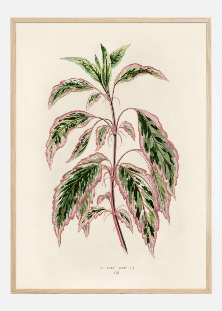 En delikat plakat med en plekthus scutellarioides. Den myke beige bakgrunnen fremhever de vakre rosa og grønne bladene. Denne dråpeformede planten skildrer en følelse av ro med bladene sine i myke farger. En perfekt gave til alle planteentusiaster.