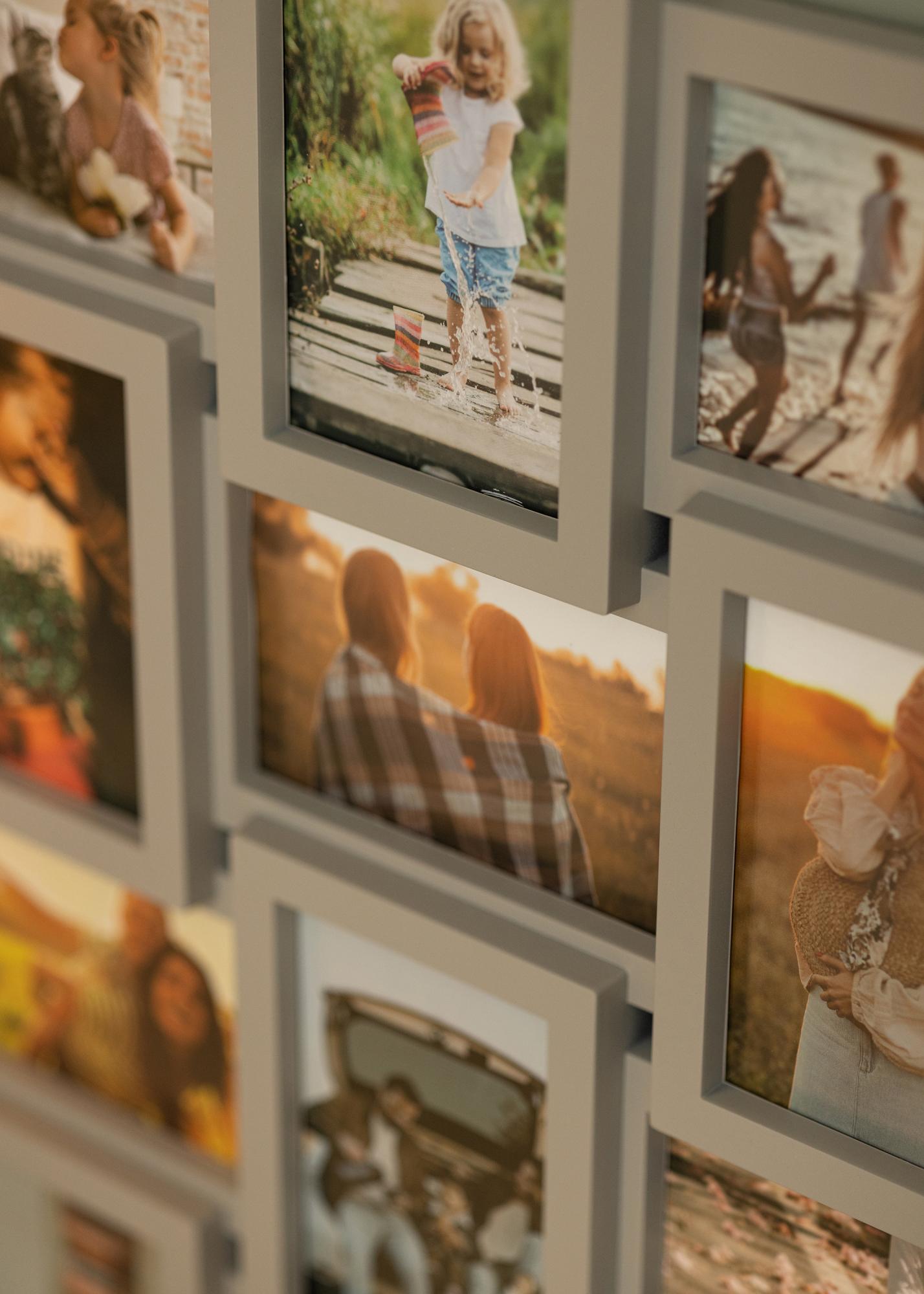 Med denne collagerammen kan 12 av dine fineste fotografier få en innramming som setter motivet i fokus. Den nøytrale fargen gjør at rammen er enkel å matche med ulike motiv, samtidig som fargenyansene i fotografiene løftes. Rammen passer for bilder i størrelse 10x15 cm, i både stående og liggende format. Du kan selv velge om du vil henge opp rammen på veggen i horisontal eller vertikal stilling.