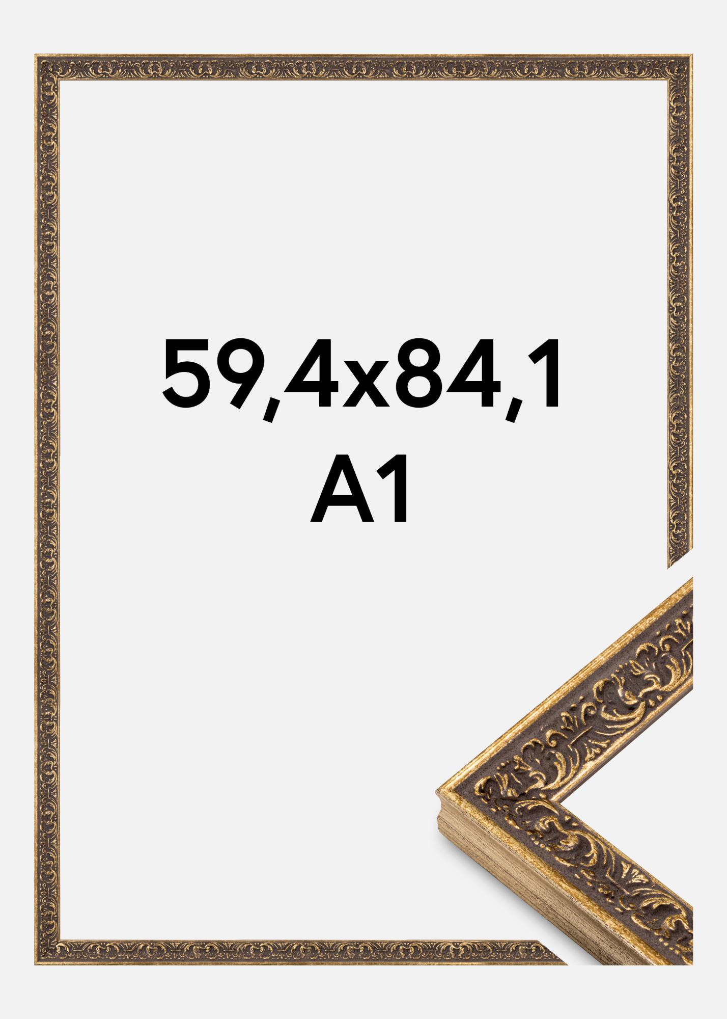 Denne elegante fotorammen i størrelsen 59,4x84,1 cm er en perfekt kombinasjon av klassisk design og moderne funksjonalitet. Med sin antikkinspirerte stil og vakkert detaljerte ornamentering i en gråaktig nyanse med gullfargede innslag, gir den en vintagefølelse som forbedrer ethvert rom. Denne bilderammen er ideell for å skape en sofistikert atmosfære i ditt hjem.