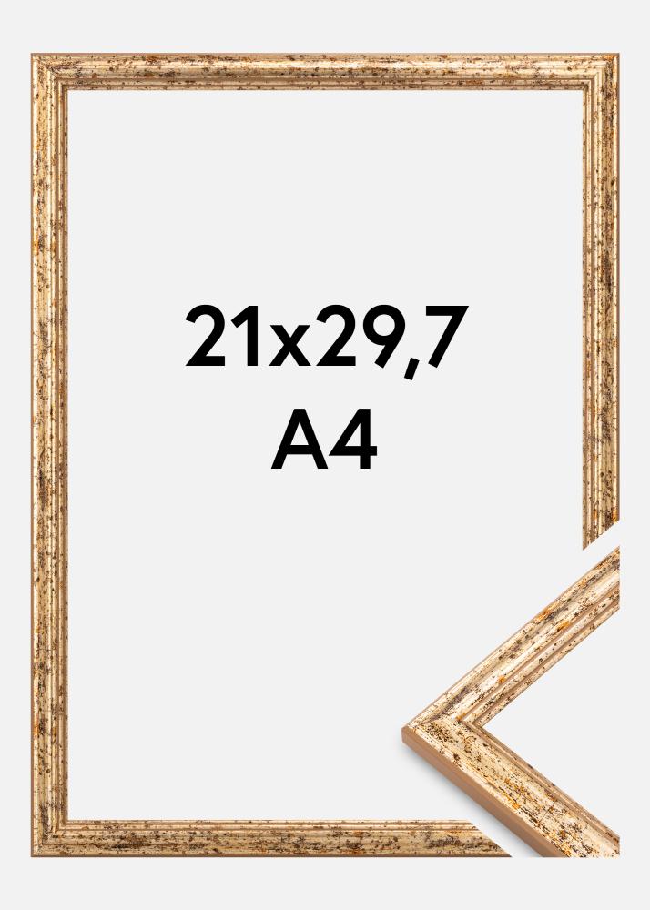 Denne elegante fotorammen i sølv er en perfekt kombinasjon av vintageinspirasjon og moderne funksjonalitet. Med sin størrelse på 21x29,7 cm (A4) er den ideell for å fremheve dine favorittfotografier eller kunstverk. Rammen er laget av tre og har en antikkgullfinish med en aldrende patina, som gir den en rustikk og sjarmerende karakter. Den profilerte bilderammen har fine detaljer og en lett slitt overflate, som skaper en klassisk og sofistikert følelse.