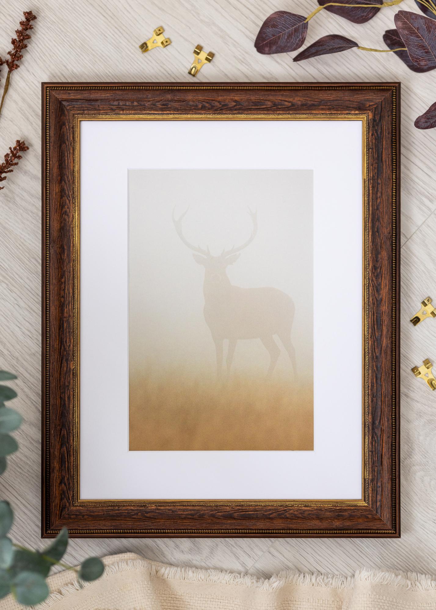Denne elegante fotorammen i størrelsen 29,7x42 cm er en perfekt kombinasjon av rustikk sjarm og klassisk eleganse. Laget i Italia av høykvalitets tre, har denne rammen en dyp brun farge med dekorative gulldetaljer langs innerkanten. Trestrukturen er tydelig synlig og gir en varm og naturlig følelse, mens de gullfargede innslagene tilfører en sofistikert touch som passer utmerket i tradisjonelle og vintageinspirasjoner.