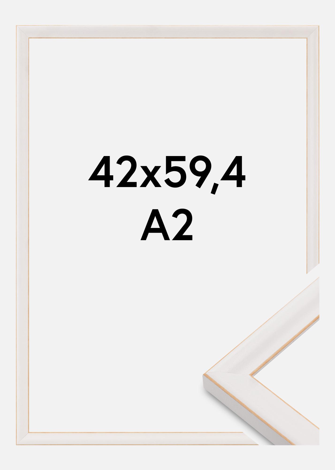 Denne elegante fotorammen i en myk, kremhvit nyanse med en tynn gullkant er en perfekt kombinasjon av klassisk og moderne design. Med en ramme størrelse på 42x59,4 cm (A2) er den ideell for å fremheve kunstverk, fotografier eller minner på en tidløs måte. Den subtile gullelementet langs innerkanten gir en eksklusiv følelse som rammer inn bildene dine på en sofistikert måte.