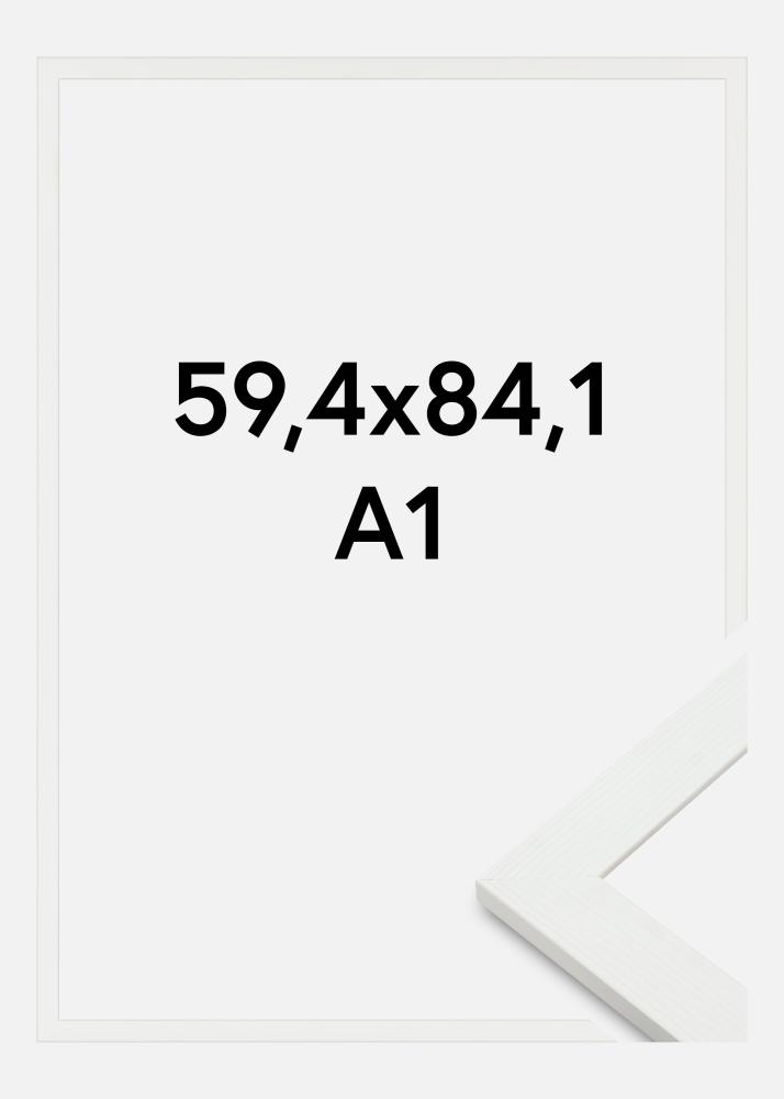 Oppdag en stilren og lys fotoramme som gir bildene dine en elegant innramming. Denne bilderammen er designet for å passe motiver i størrelsen 59,4x84,1 cm (A1), noe som gjør den ideell for større kunstverk eller fotografier. Med sin subtile trestruktur og hvite nyanse smelter den enkelt inn i ulike interiørstiler, samtidig som den fremhever bildene dine på en smakfull måte.