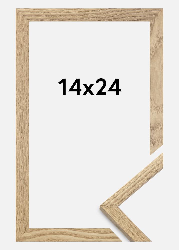 Rammen er laget av MDF-materiale med en foliert eiketre-farget overflate, og har en tynn rammeprofil på 14 mm. Det er god plass til å supplere bildene med en luksuriøs passepartout, siden rammen har en innerdybde på 12 mm.