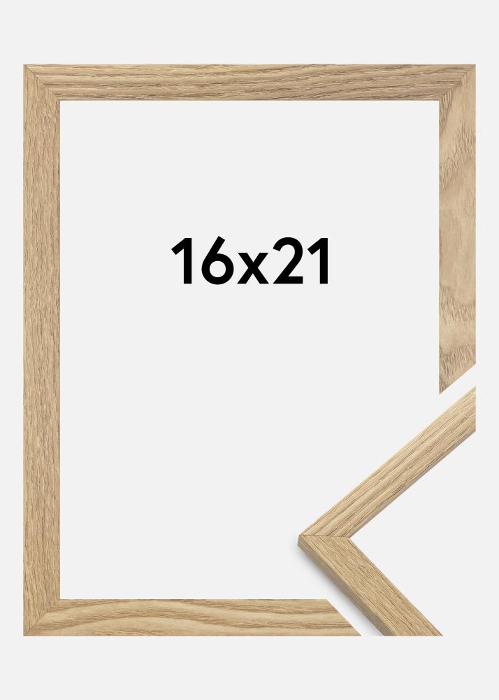 Rammen er laget av MDF-materiale med en foliert eiketre-farget overflate, og har en tynn rammeprofil på 14 mm. Det er god plass til å supplere bildene med en luksuriøs passepartout, siden rammen har en innerdybde på 12 mm.