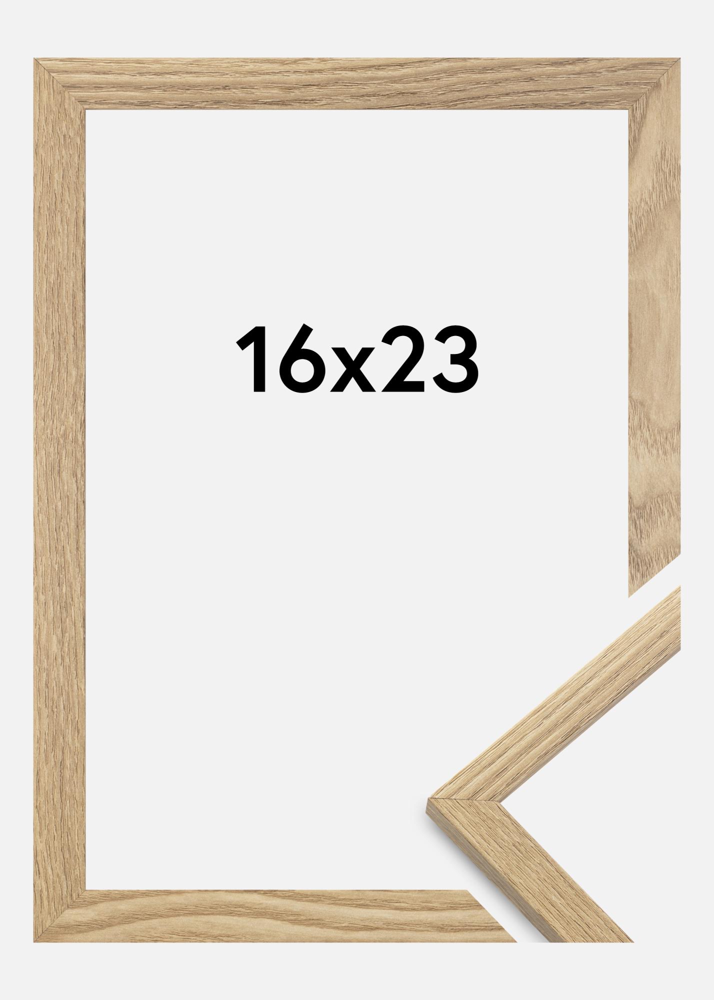Rammen er laget av MDF-materiale med en foliert eiketre-farget overflate, og har en tynn rammeprofil på 14 mm. Det er god plass til å supplere bildene med en luksuriøs passepartout, siden rammen har en innerdybde på 12 mm.