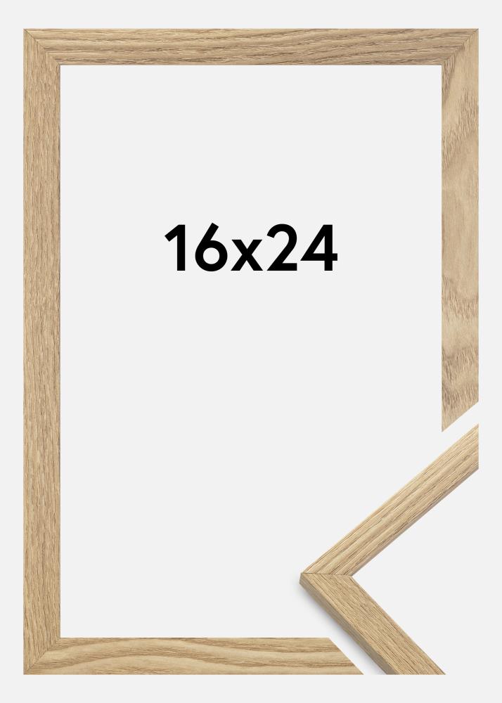 Rammen er laget av MDF-materiale med en foliert eiketre-farget overflate, og har en tynn rammeprofil på 14 mm. Det er god plass til å supplere bildene med en luksuriøs passepartout, siden rammen har en innerdybde på 12 mm.