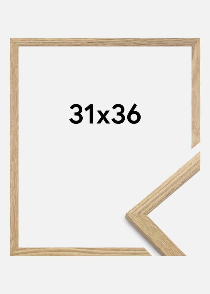 Rammen er laget av MDF-materiale med en foliert eiketre-farget overflate, og har en tynn rammeprofil på 14 mm. Det er god plass til å supplere bildene med en luksuriøs passepartout, siden rammen har en innerdybde på 12 mm.