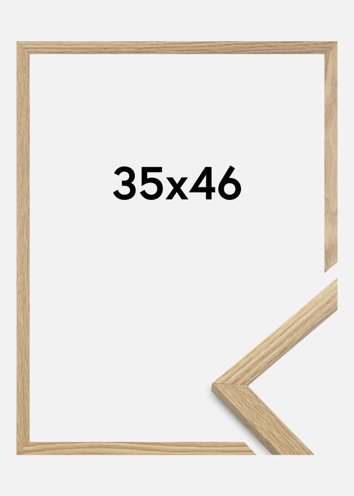Rammen er laget av MDF-materiale med en foliert eiketre-farget overflate, og har en tynn rammeprofil på 14 mm. Det er god plass til å supplere bildene med en luksuriøs passepartout, siden rammen har en innerdybde på 12 mm.