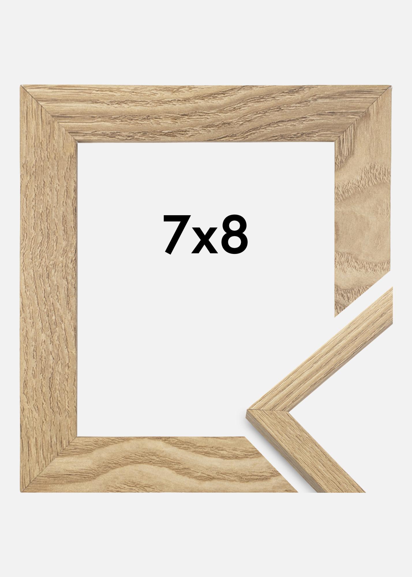 Rammen er laget av MDF-materiale med en foliert eiketre-farget overflate, og har en tynn rammeprofil på 14 mm. Det er god plass til å supplere bildene med en luksuriøs passepartout, siden rammen har en innerdybde på 12 mm.