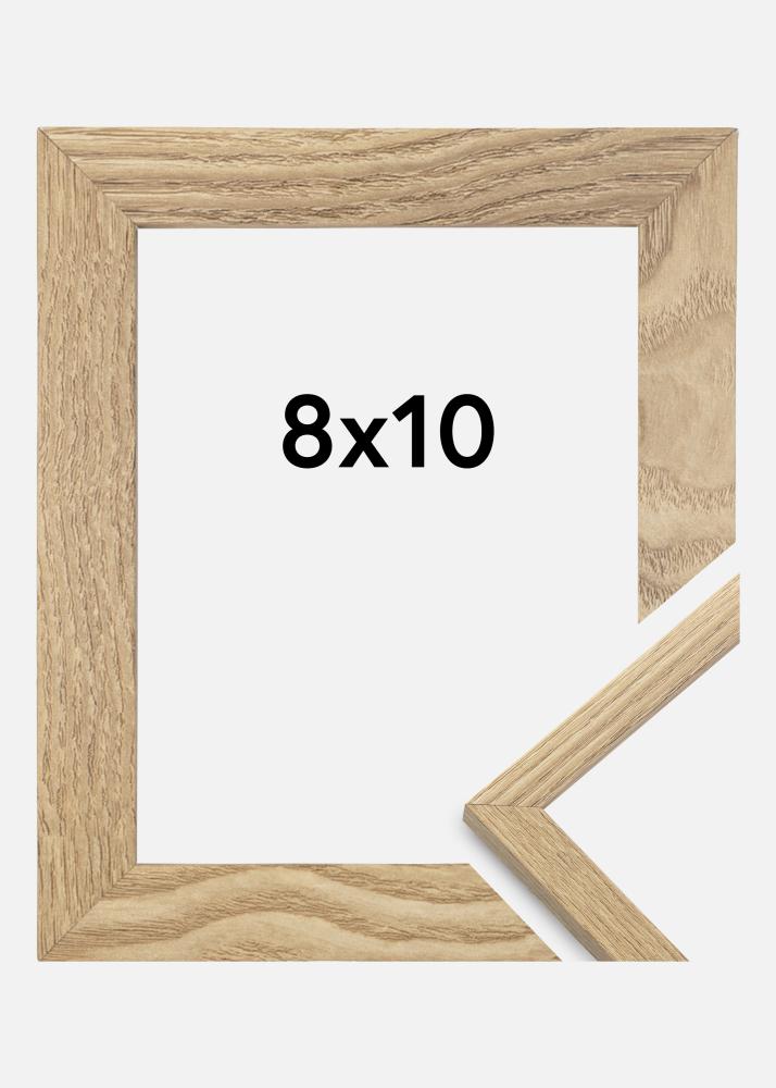 Rammen er laget av MDF-materiale med en foliert eiketre-farget overflate, og har en tynn rammeprofil på 14 mm. Det er god plass til å supplere bildene med en luksuriøs passepartout, siden rammen har en innerdybde på 12 mm.