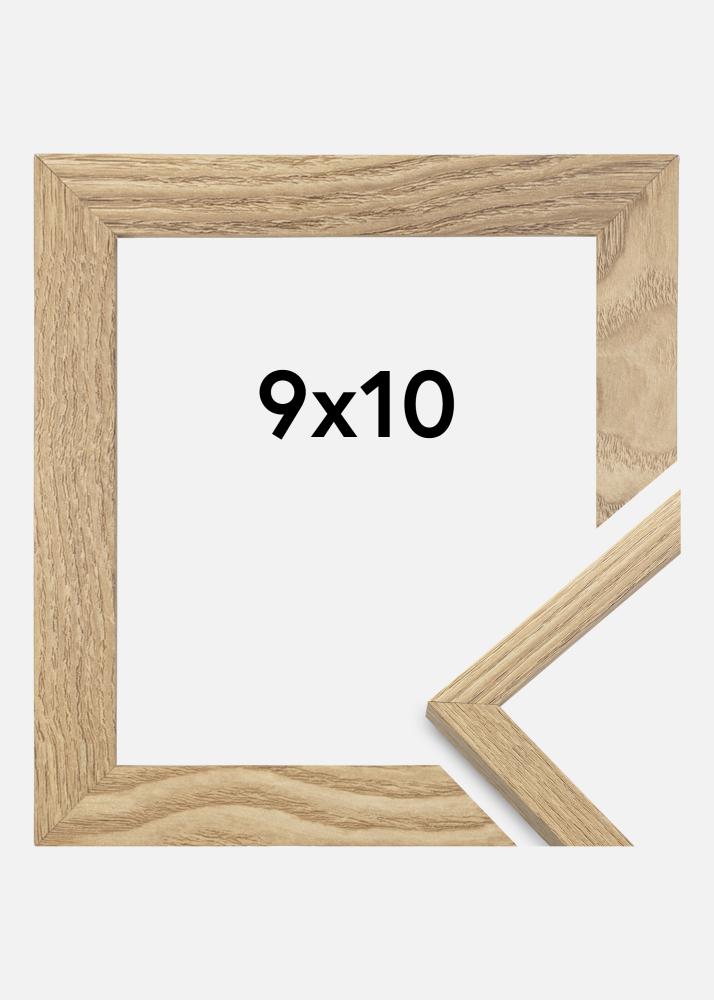 Rammen er laget av MDF-materiale med en foliert eiketre-farget overflate, og har en tynn rammeprofil på 14 mm. Det er god plass til å supplere bildene med en luksuriøs passepartout, siden rammen har en innerdybde på 12 mm.