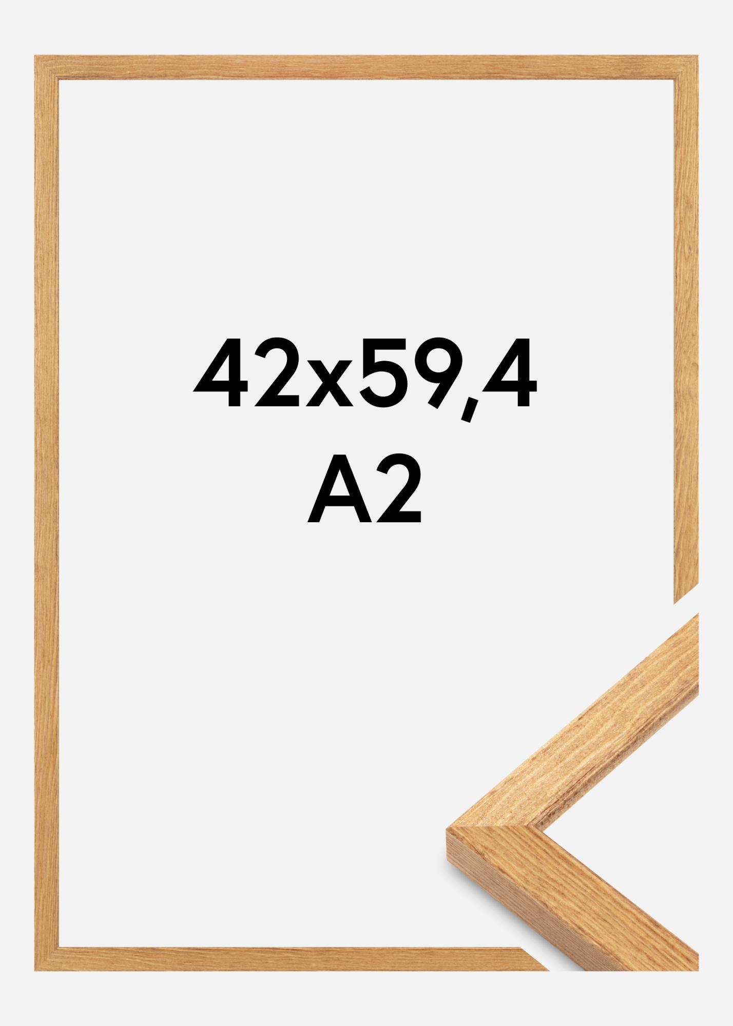 Denne stilige fotorammen i eikefarget furu er en perfekt kombinasjon av eleganse og funksjonalitet. Med en varm og naturlig tone gir den en tidløs følelse til din innredning, uansett om du foretrekker en moderne eller klassisk stil. Rammen er designet for å passe motiver i størrelsen 42x59,4 cm (A2), noe som gjør den ideell for å fremheve dine favorittfotografier, plakater eller kunstverk.