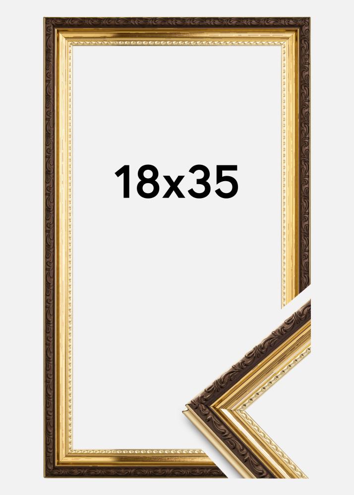 Leter du etter en vakkert dekorert ramme i gammel stil? Abisko Akrylglass Gull er en solid gullramme med utrolig stilige ornamenter. Rammens 25 mm brede list har en blank gullfarge med en utsmykket brun bord i midten. Gulldelen er også utsmykket, med et bølgende mønster nærmest glasset.