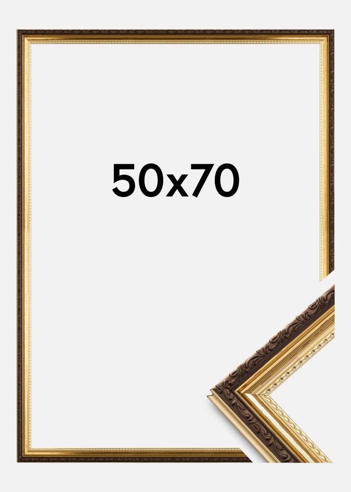 Leter du etter en vakkert dekorert ramme i gammel stil? Abisko Akrylglass Gull er en solid gullramme med utrolig stilige ornamenter. Rammens 25 mm brede list har en blank gullfarge med en utsmykket brun bord i midten. Gulldelen er også utsmykket, med et bølgende mønster nærmest glasset.