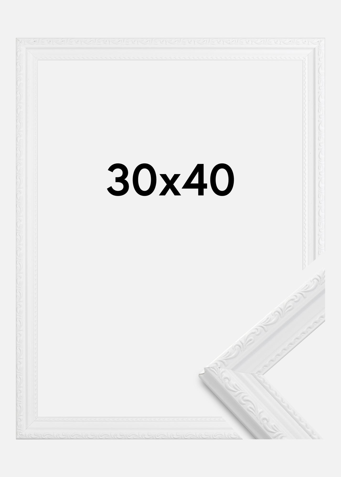 Abisko Hvit er en elegant fotoramme i retrostil med fine utsmykninger. Passer veldig bra dersom du ønsker en hvit fotoramme i eldre stil.