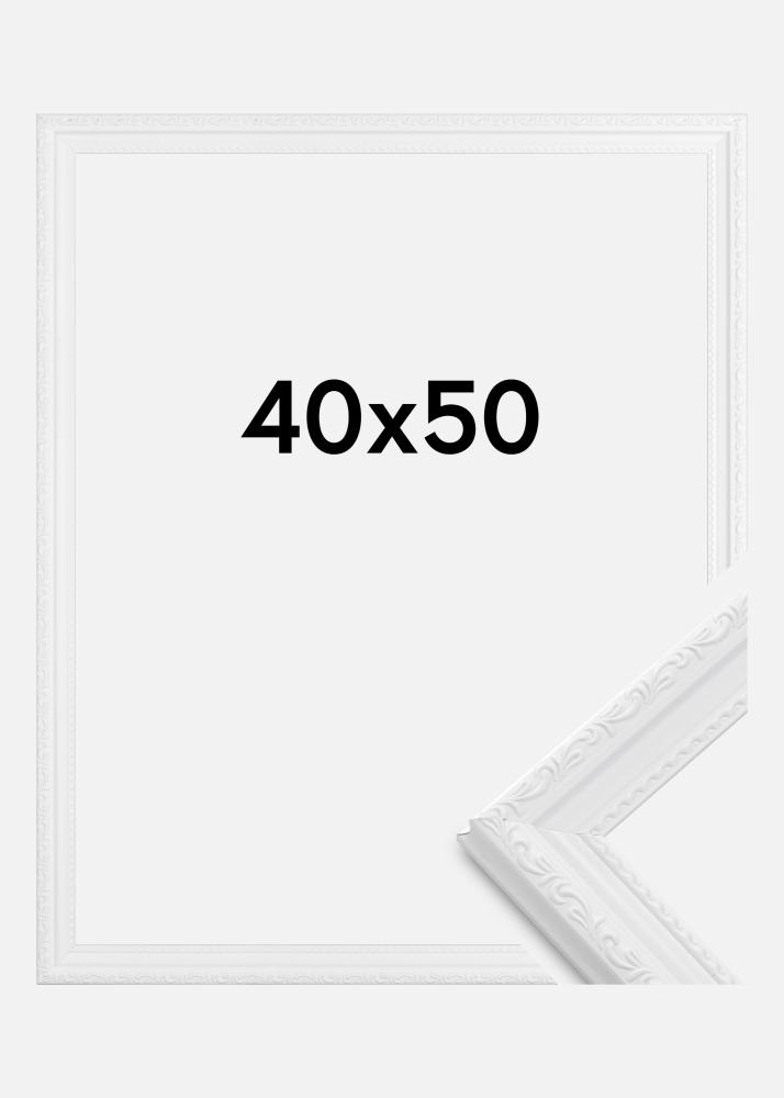 Abisko Hvit er en elegant fotoramme i retrostil med fine utsmykninger. Passer veldig bra dersom du ønsker en hvit fotoramme i eldre stil.