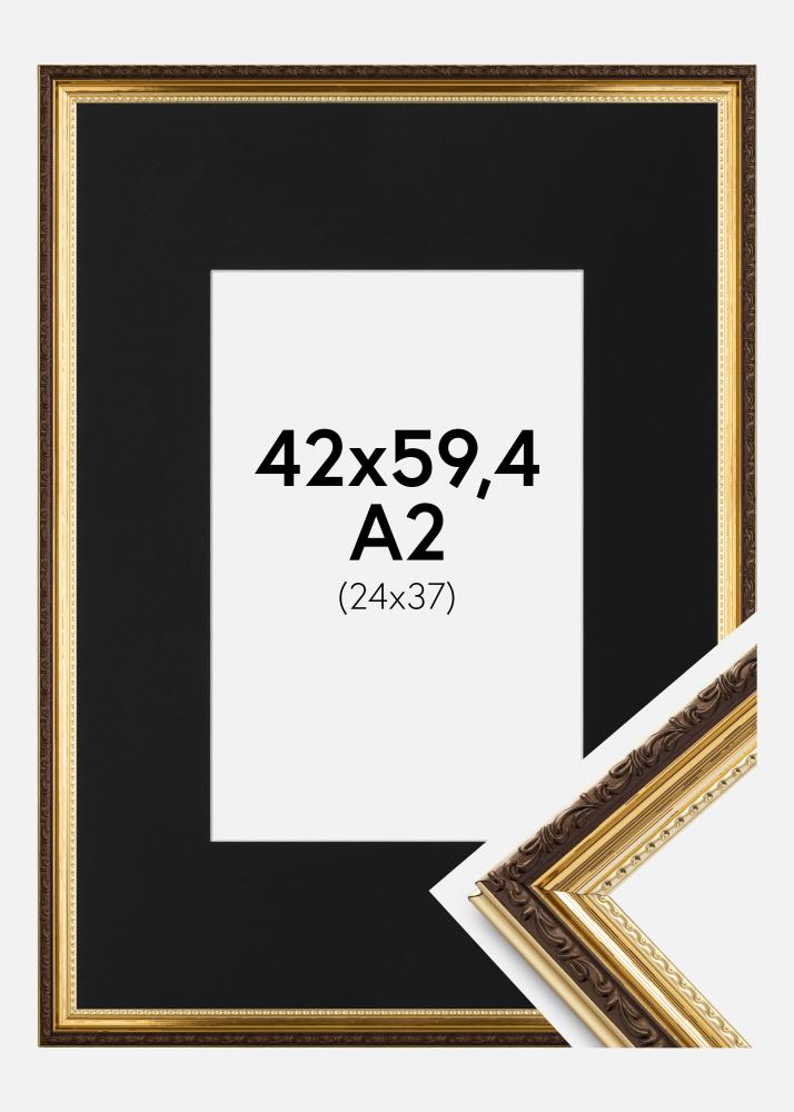 Ramme Abisko Gull 42x59,4 cm (A2) - Passepartout Svart 25x38 cm