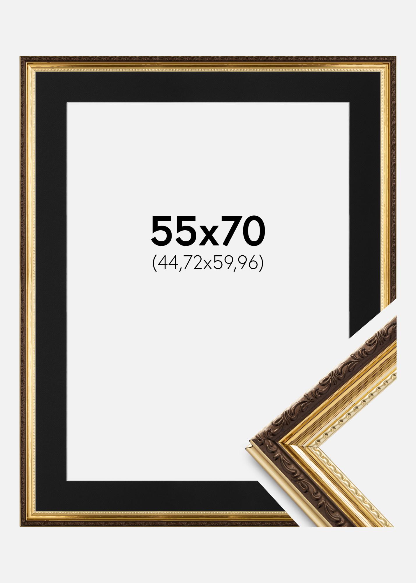 Pakke med bilderamme og passende svart passepartout. På produktbildet ser du rammens mål (skrevet med fet skrift) og passepartoutens innvendige mål (skrevet i parentes). Merk at passepartoutens innvendige mål alltid må være 1 cm mindre enn ønsket bildestørrelse.