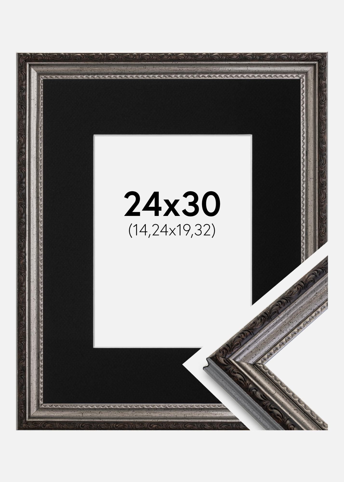Ramme Abisko Sølv 24x30 cm - Passepartout Svart 6x8 inches
