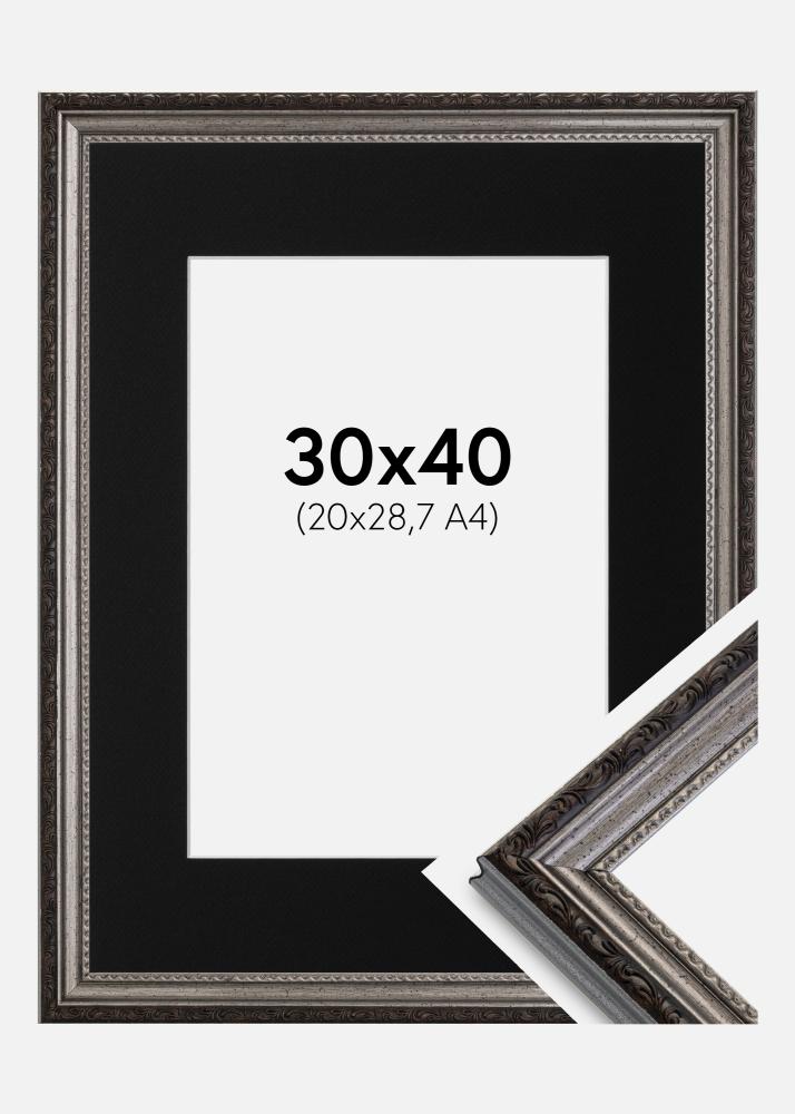 Ramme Abisko Sølv 30x40 cm - Passepartout Svart 21x29,7 cm (A4)