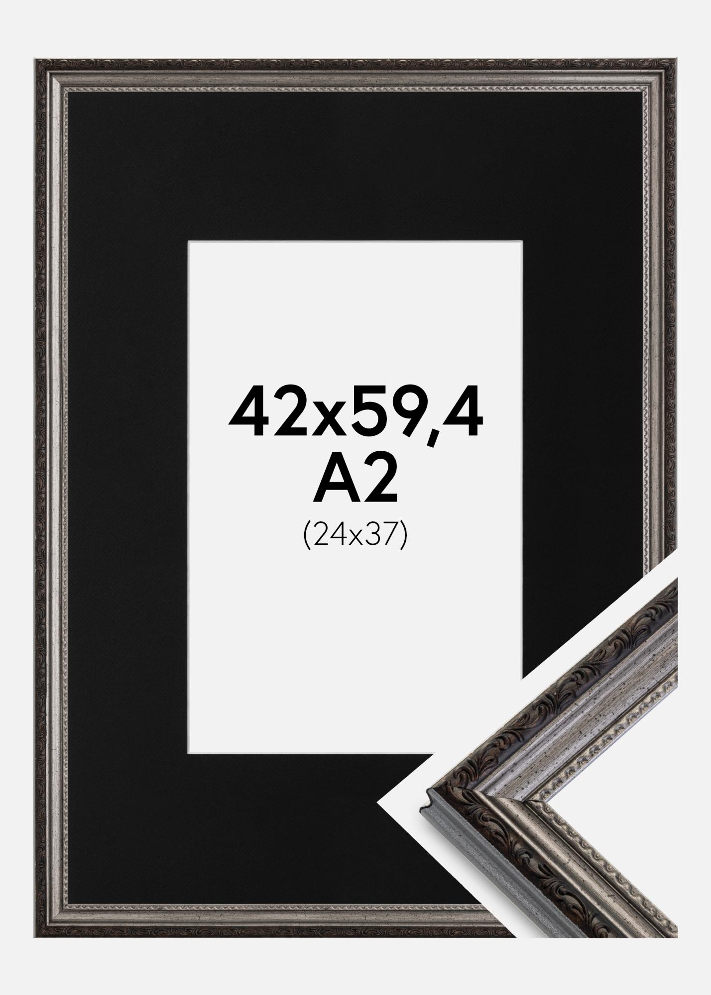 Ramme Abisko Sølv 42x59,4 cm (A2) - Passepartout Svart 25x38 cm