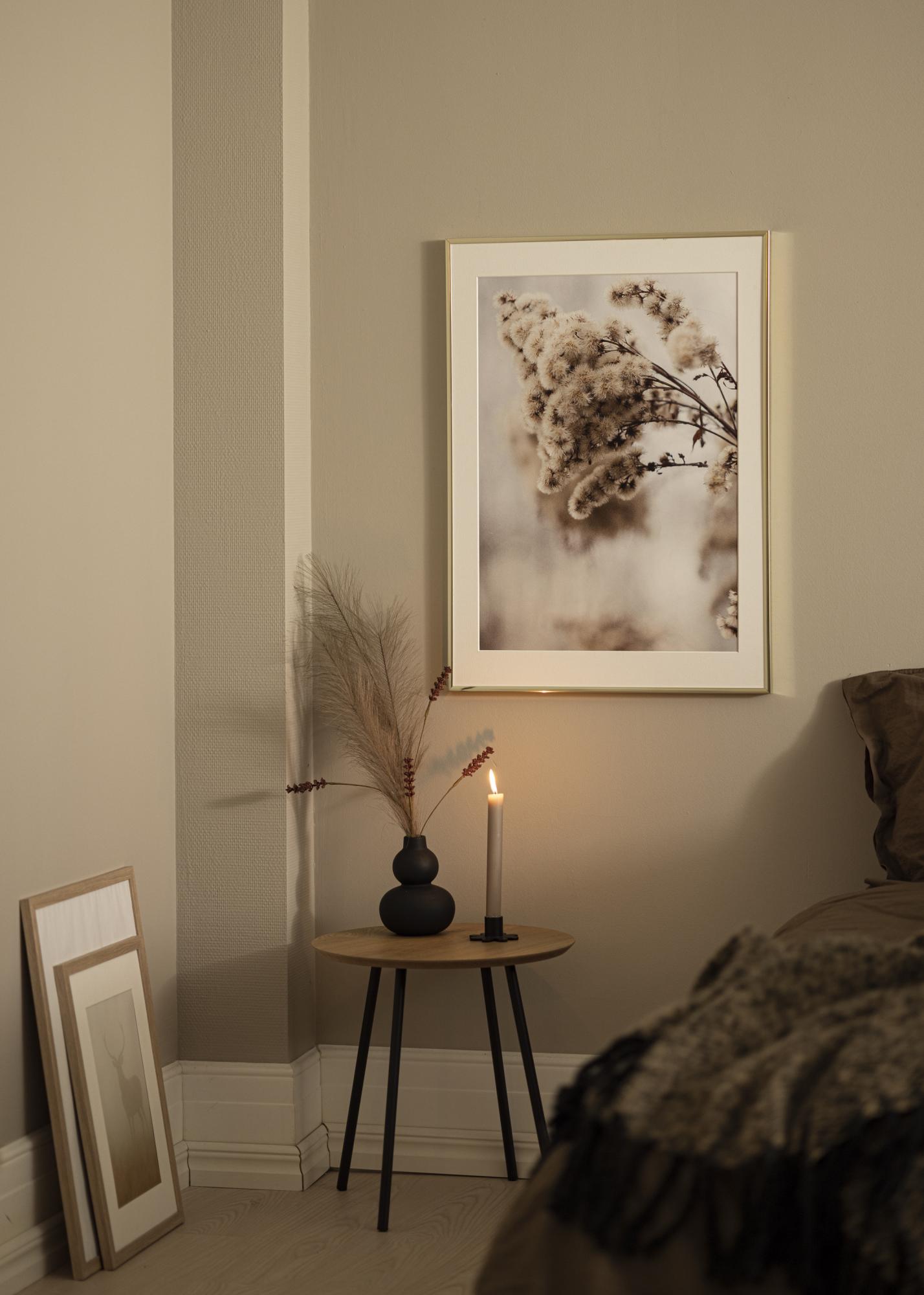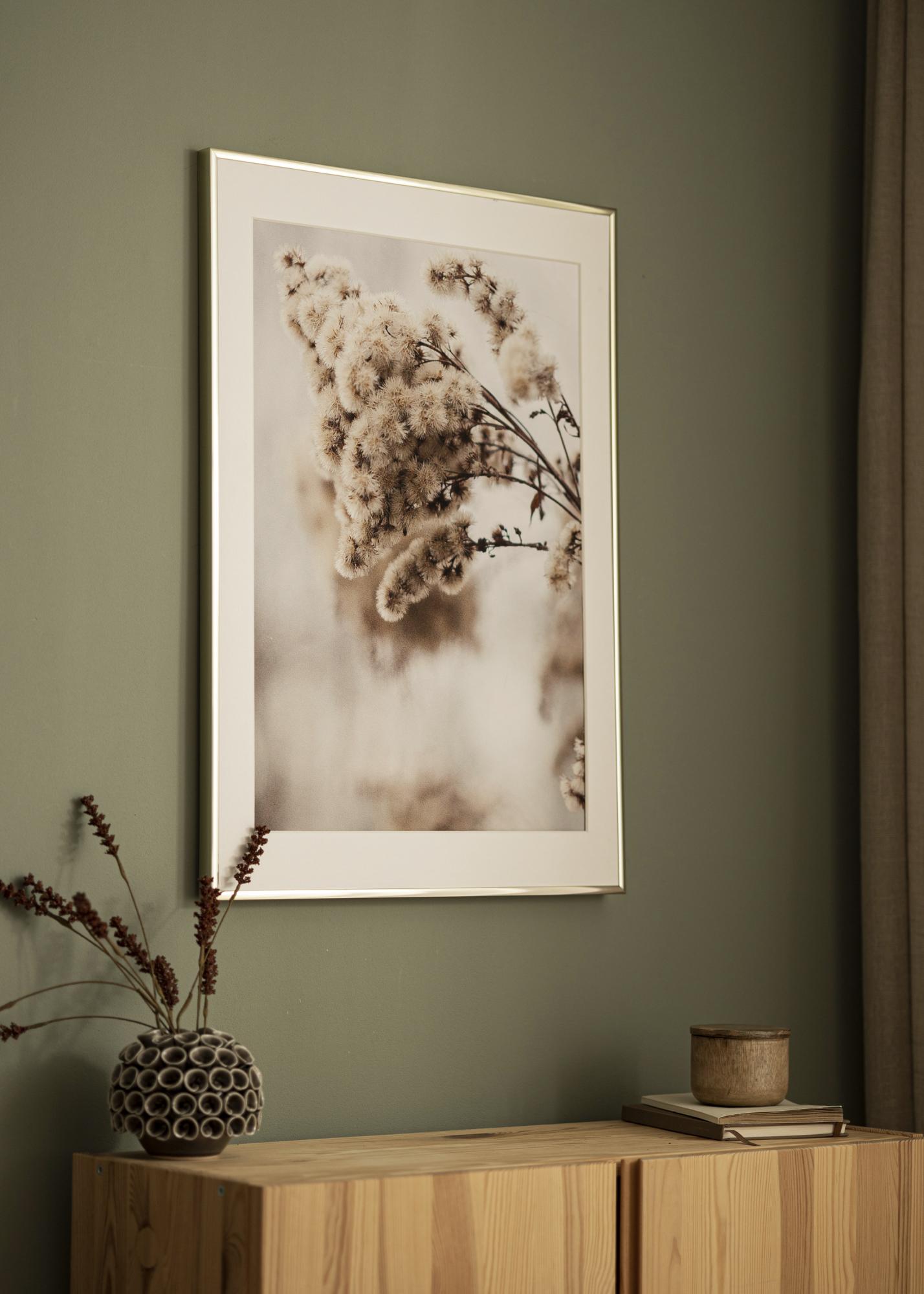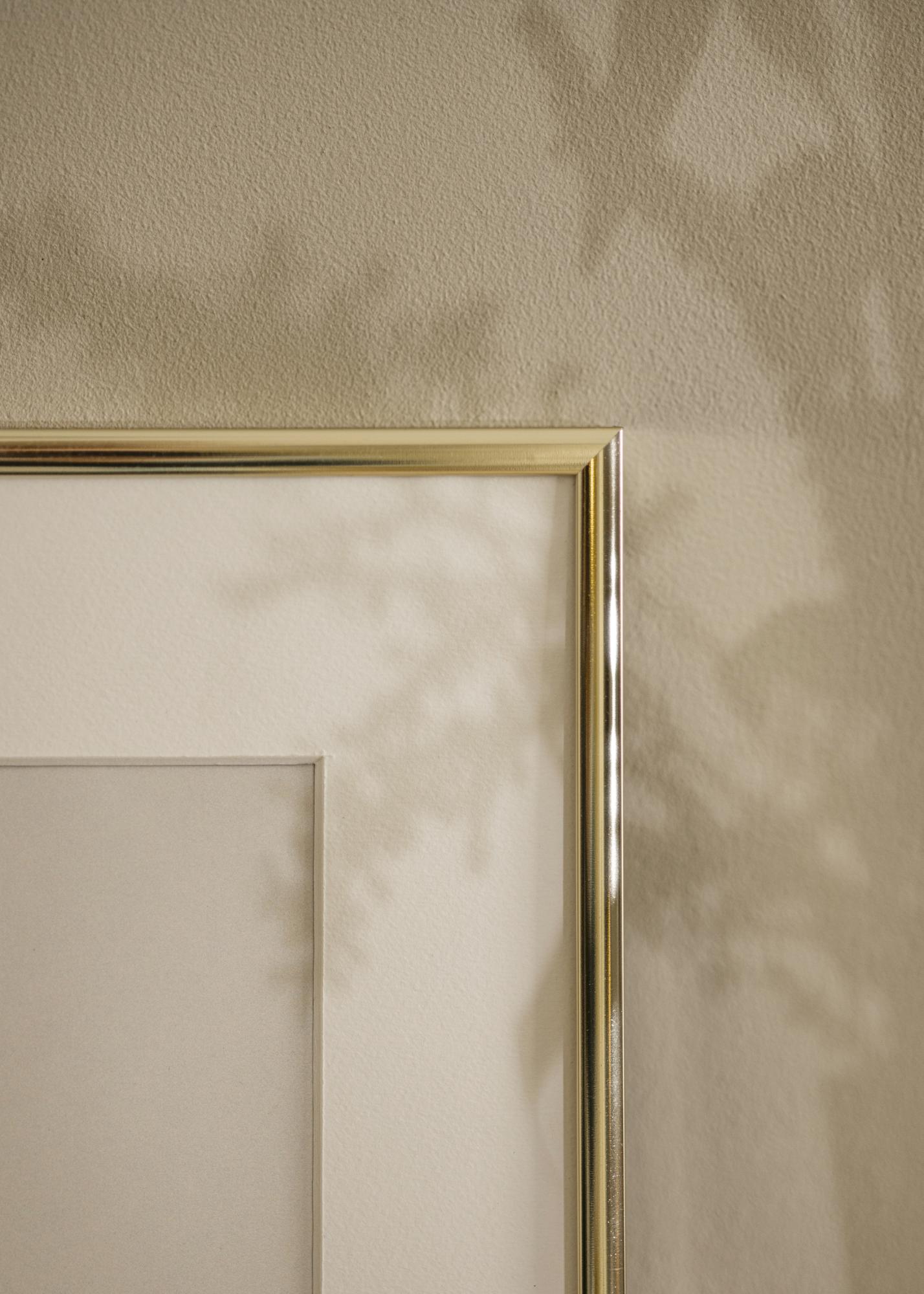Dette er en tynn aluminiumsramme i en stilren blank gullnyanse. Rammen sin tynne list, på bare 9 mm, gjør at hovedfokuset vil ligge på dine motiver. Det er perfekt hvis du har trendy posters eller bilder av nære og kjære du ønsker å gi plass på veggen.