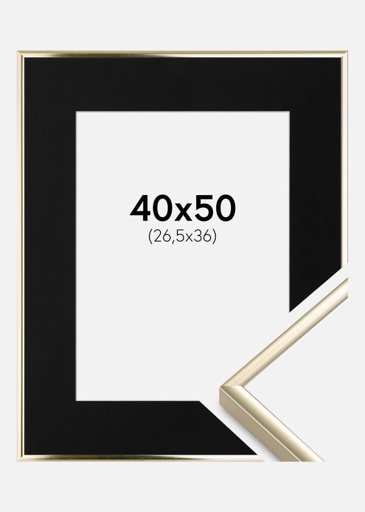 Ramme Aluminium Blank Gull 40x50 cm - Passepartout Svart 27,5x37 cm