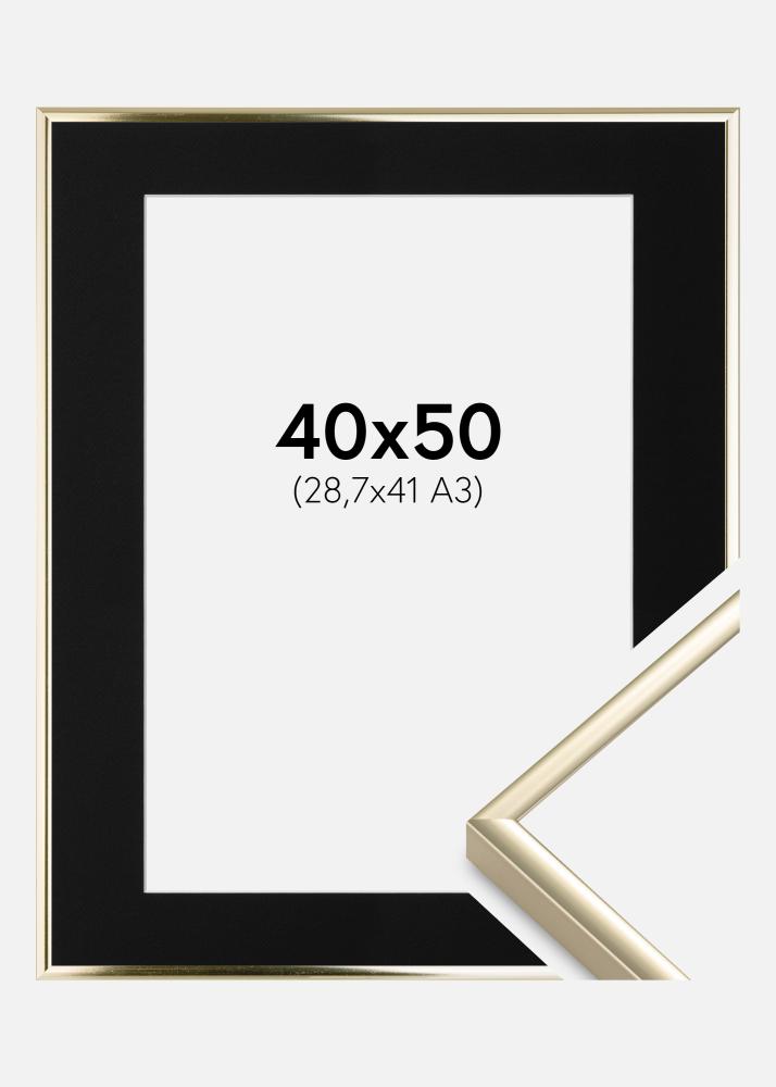 Ramme Aluminium Blank Gull 40x50 cm - Passepartout Svart 29,7x42 cm (A3)