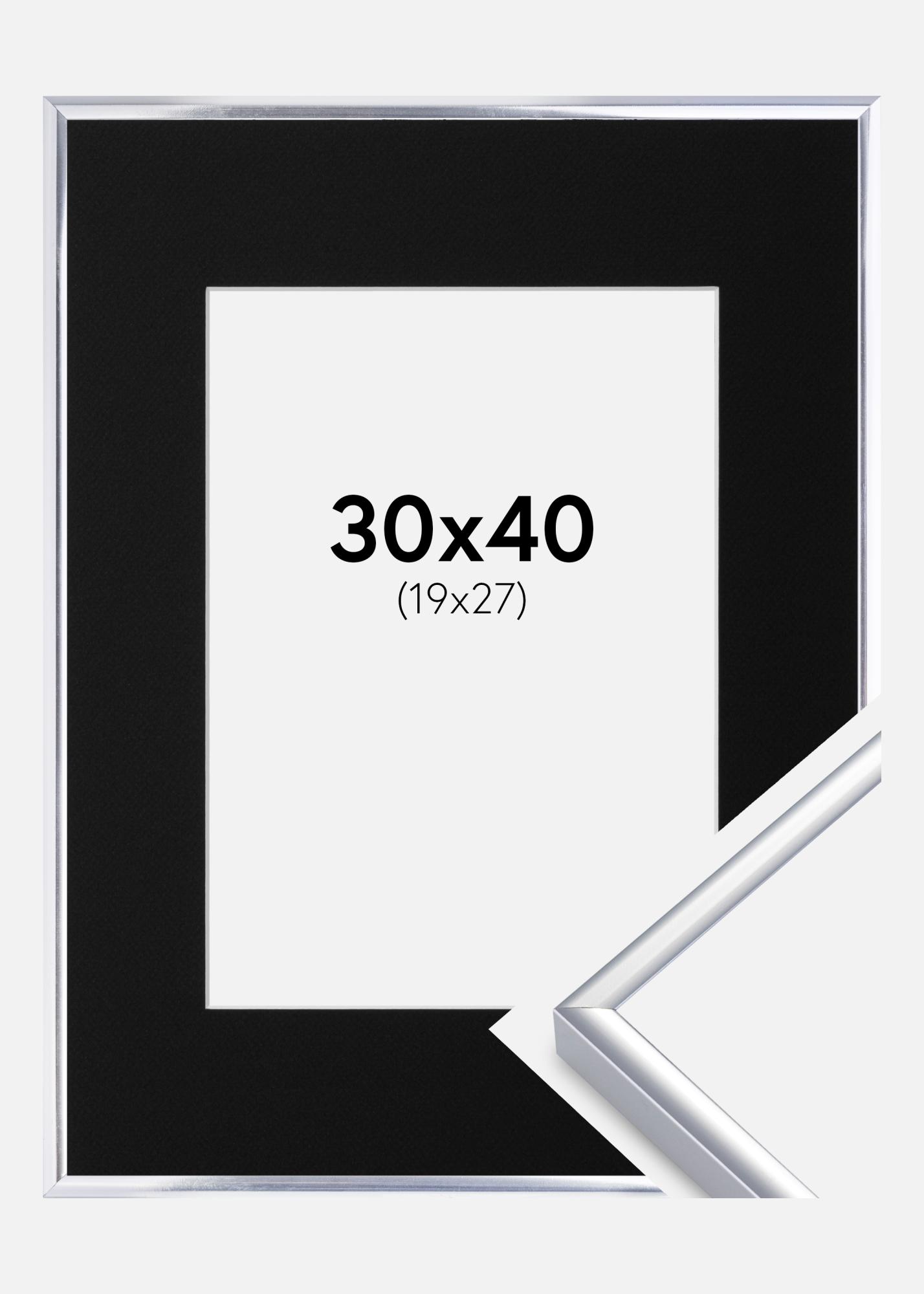 Ramme Aluminium Blank Sølv 30x40 cm - Passepartout Svart 20x28 cm