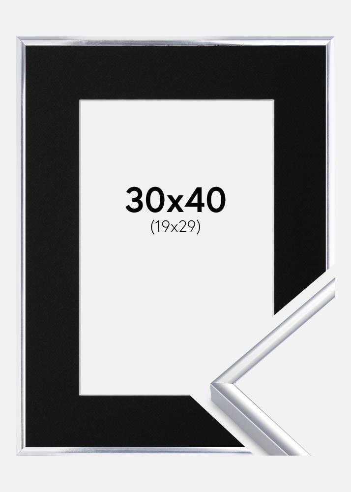 Ramme Aluminium Blank Sølv 30x40 cm - Passepartout Svart 21x30 cm