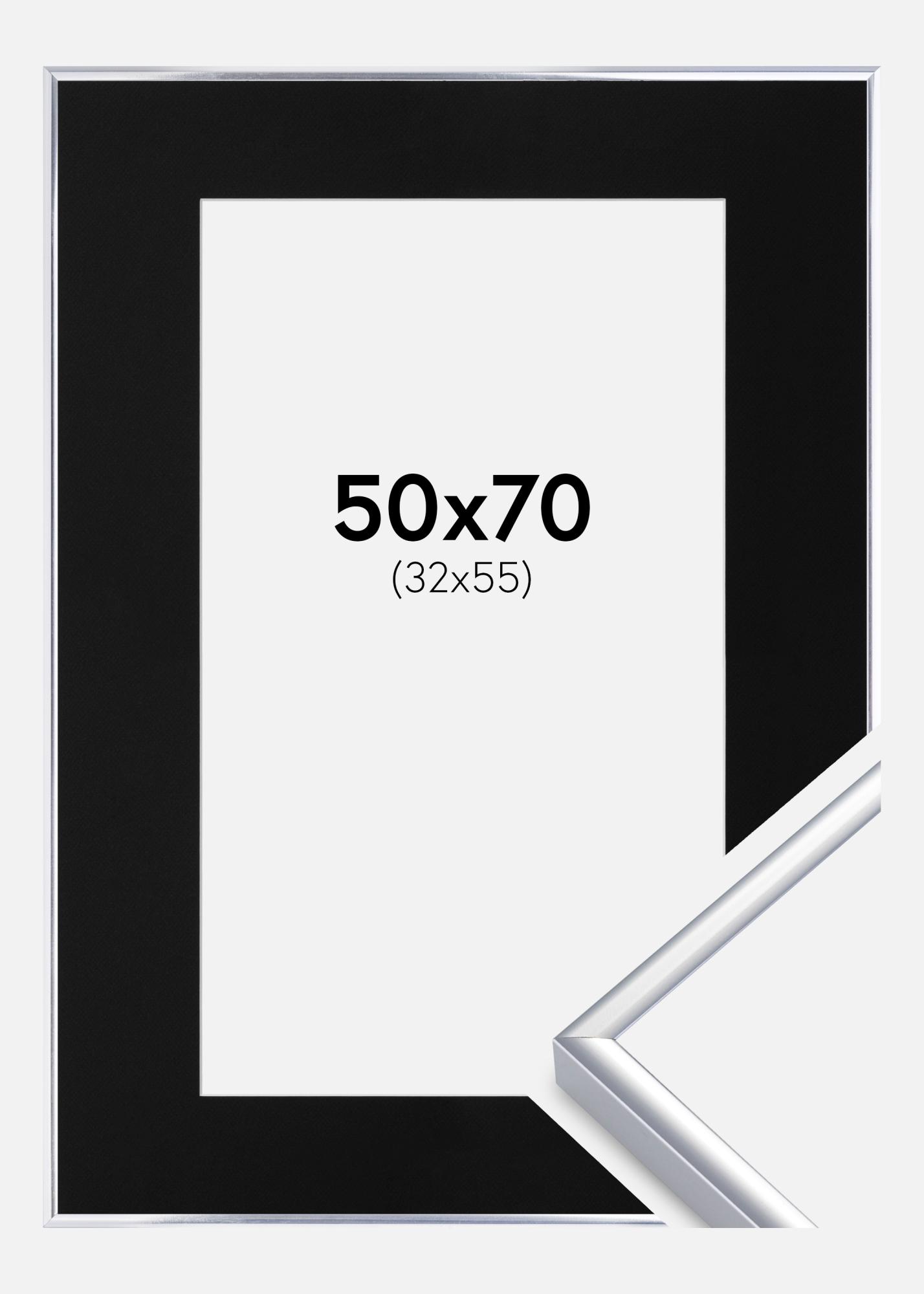 Ramme Aluminium Blank Sølv 50x70 cm - Passepartout Svart 33x56 cm