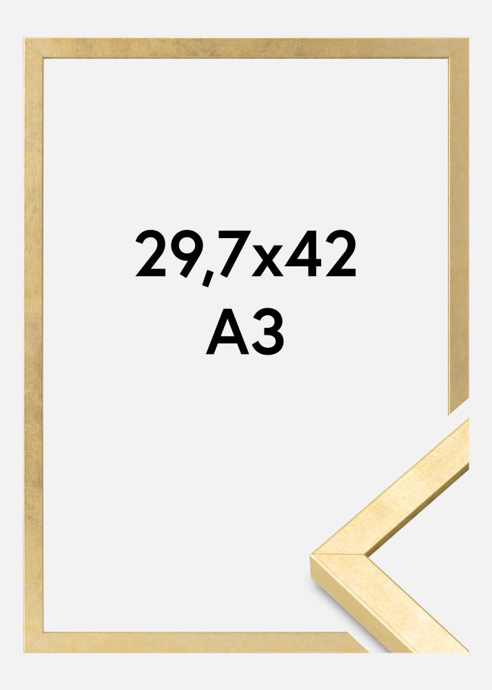 Enten du leter etter en enkel fotoramme eller ønsker å lage en samling, finnes denne modellen i flere størrelser for å møte dine behov. Velg vår gullramme i målene 29,7 x 42 cm for å gi dine minner den innrammingen de fortjener.