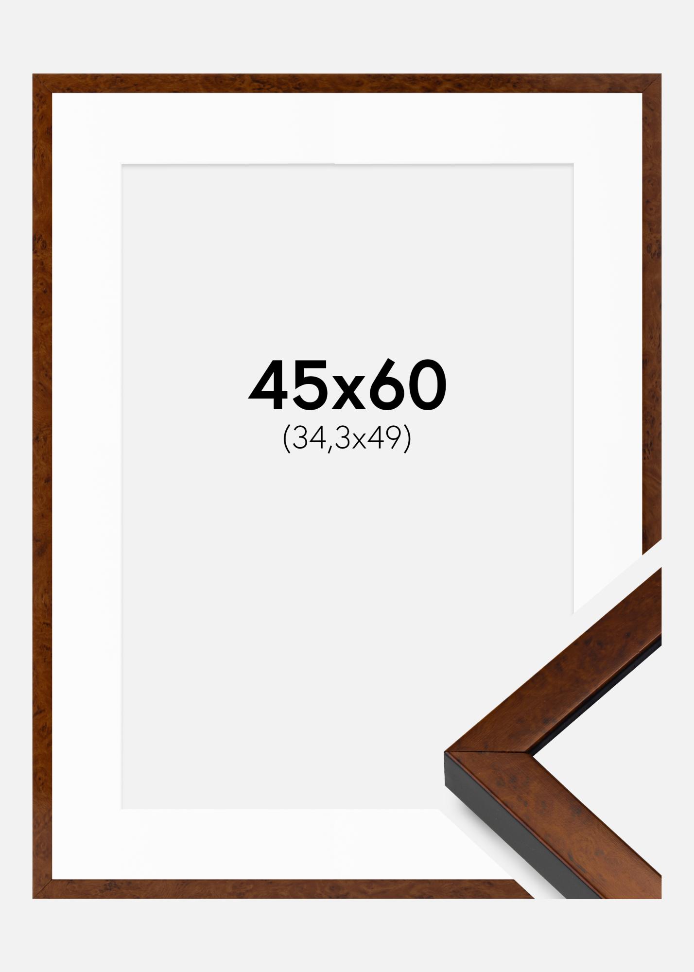 Ramme Ares valnøtt 45x60 cm - Passepartout Hvit B3 353x500 mm