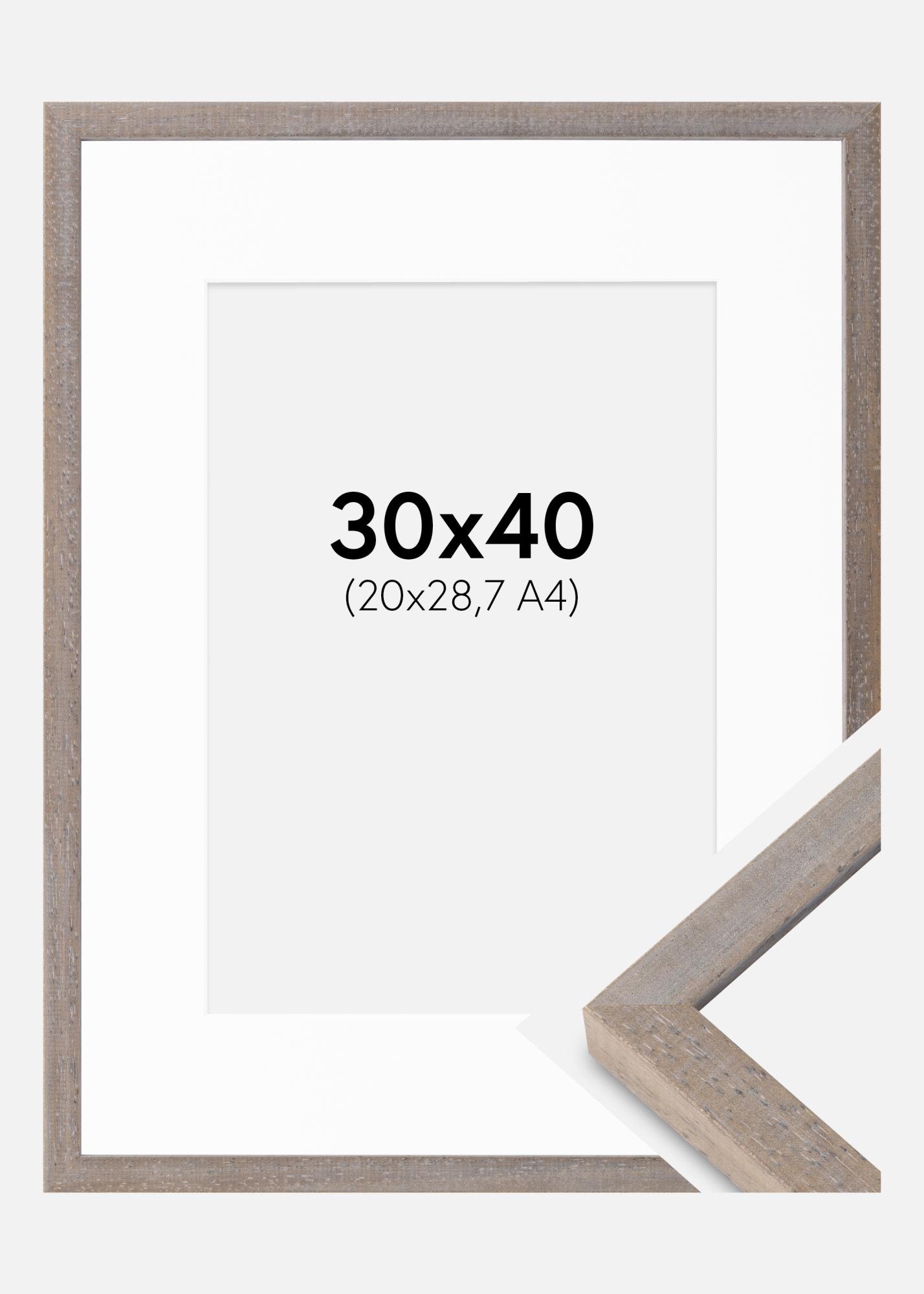 Ramme Ares Grå 30x40 cm - Passepartout Hvit 21x29,7 cm