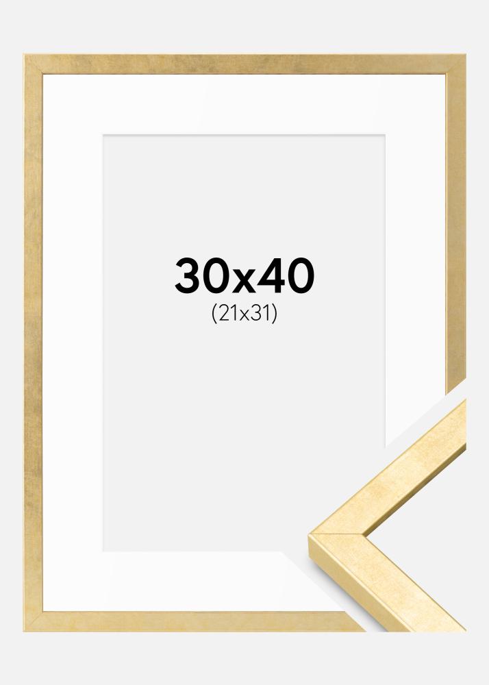 Ramme Ares Gull 30x40 cm - Passepartout Hvit 22x32 cm