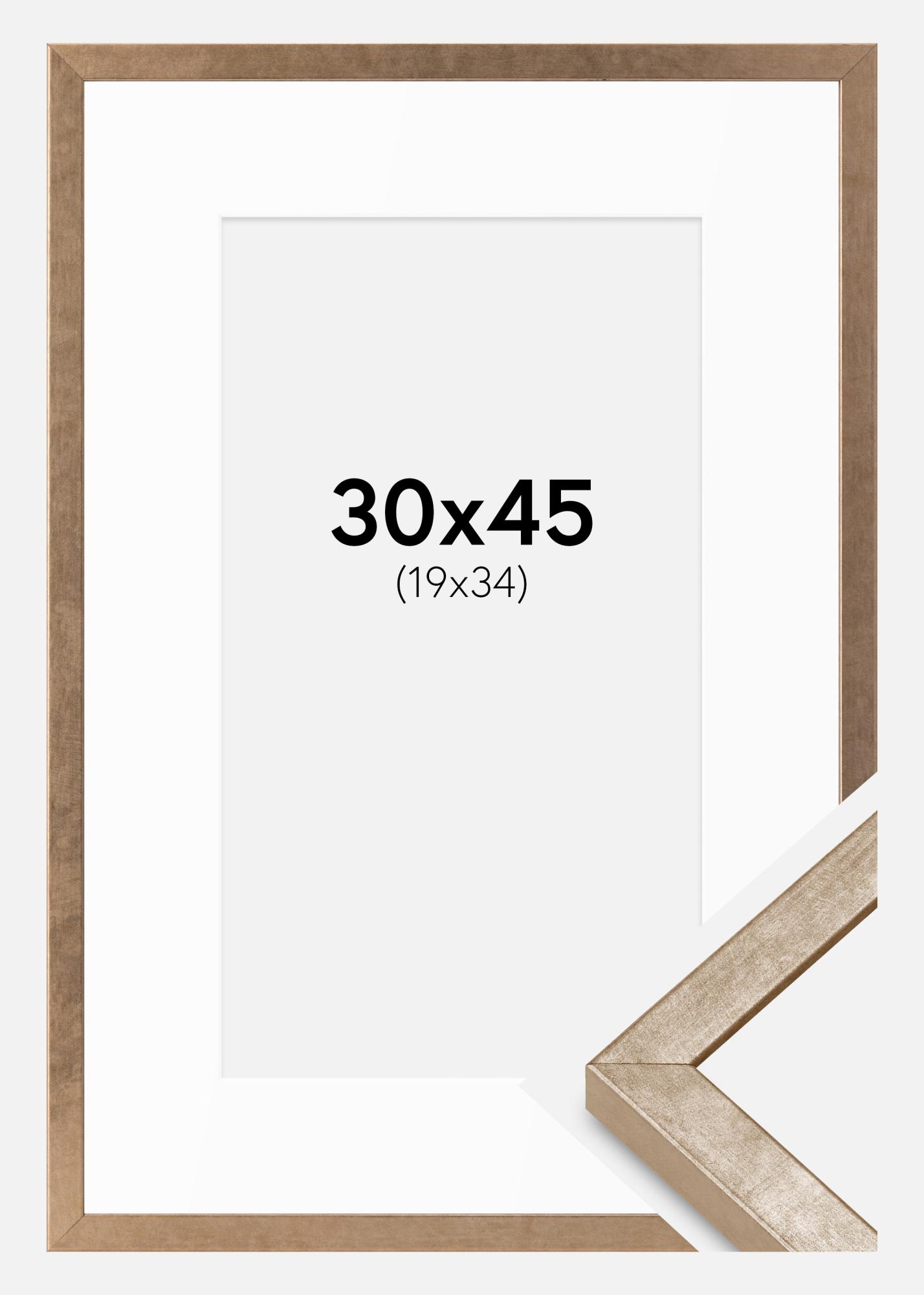 En elegant messingfarget ramme med passepartout kan forvandle hvilket som helst rom ved å gi bildene dine en sofistikert innramming. Denne rammen, med sine yttermål på 32x47 cm, er perfekt for å fremheve et bilde i størrelsen 20x35 cm. Med en bredde på 15 mm og en dybde på 20 mm, tilbyr rammen en stabil og stilren innramming som passer inn i de fleste interiørstiler.