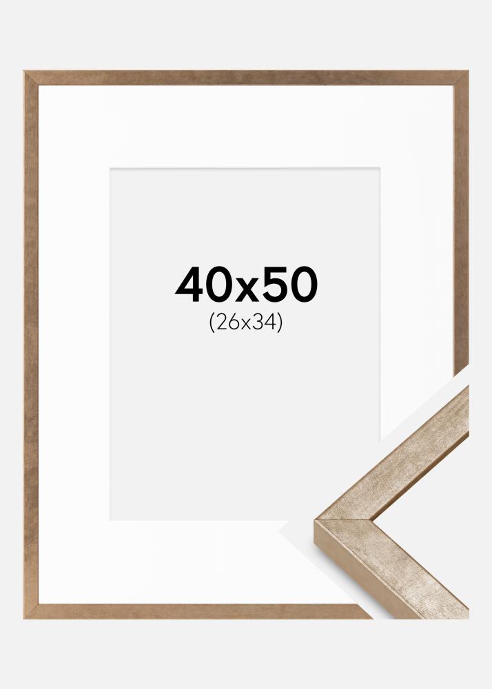 Ramme Ares Messing 40x50 cm - Passepartout Hvit 27x35 cm