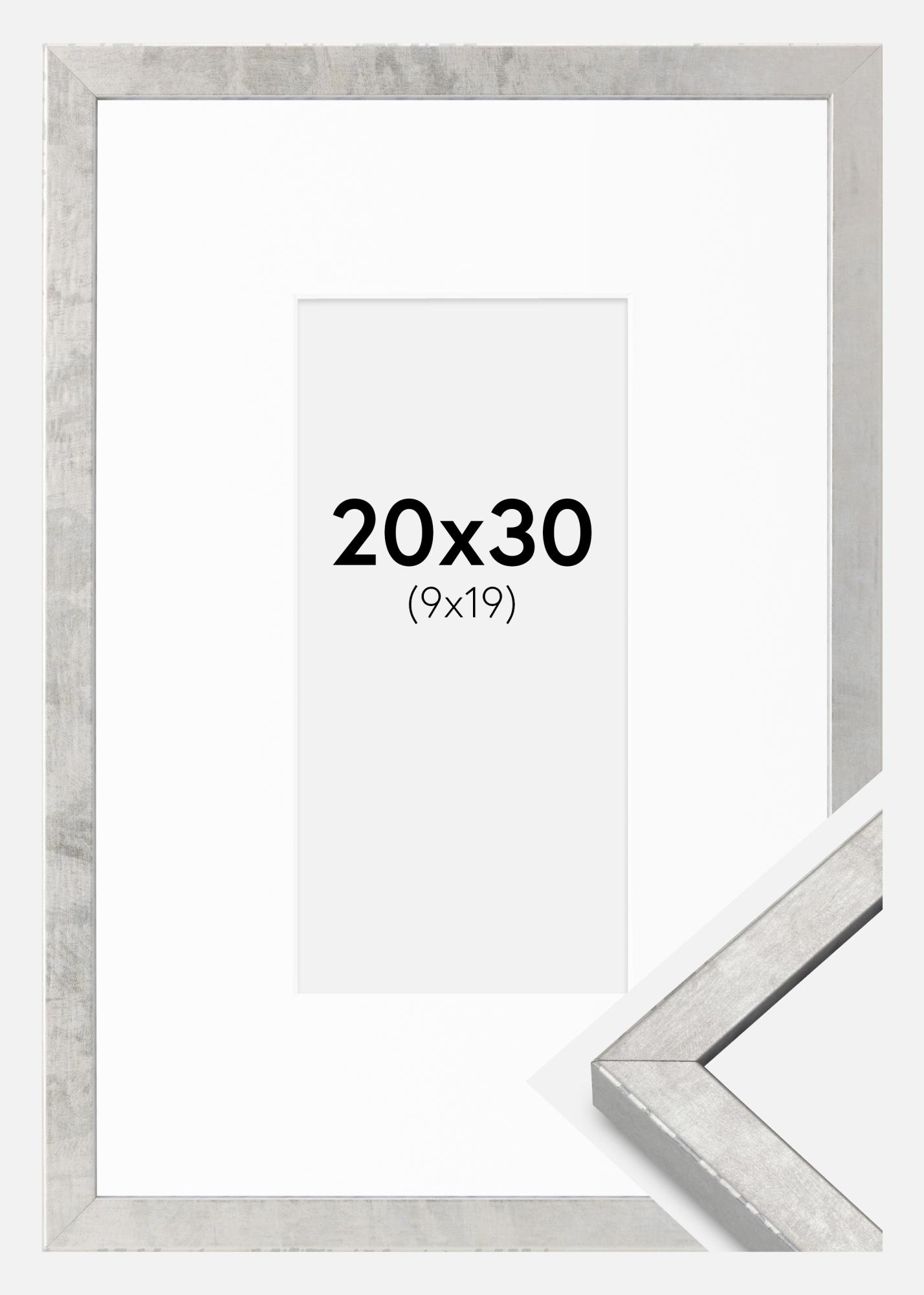 Ramme Ares Sølv 20x30 cm - Passepartout Hvit 10x20 cm