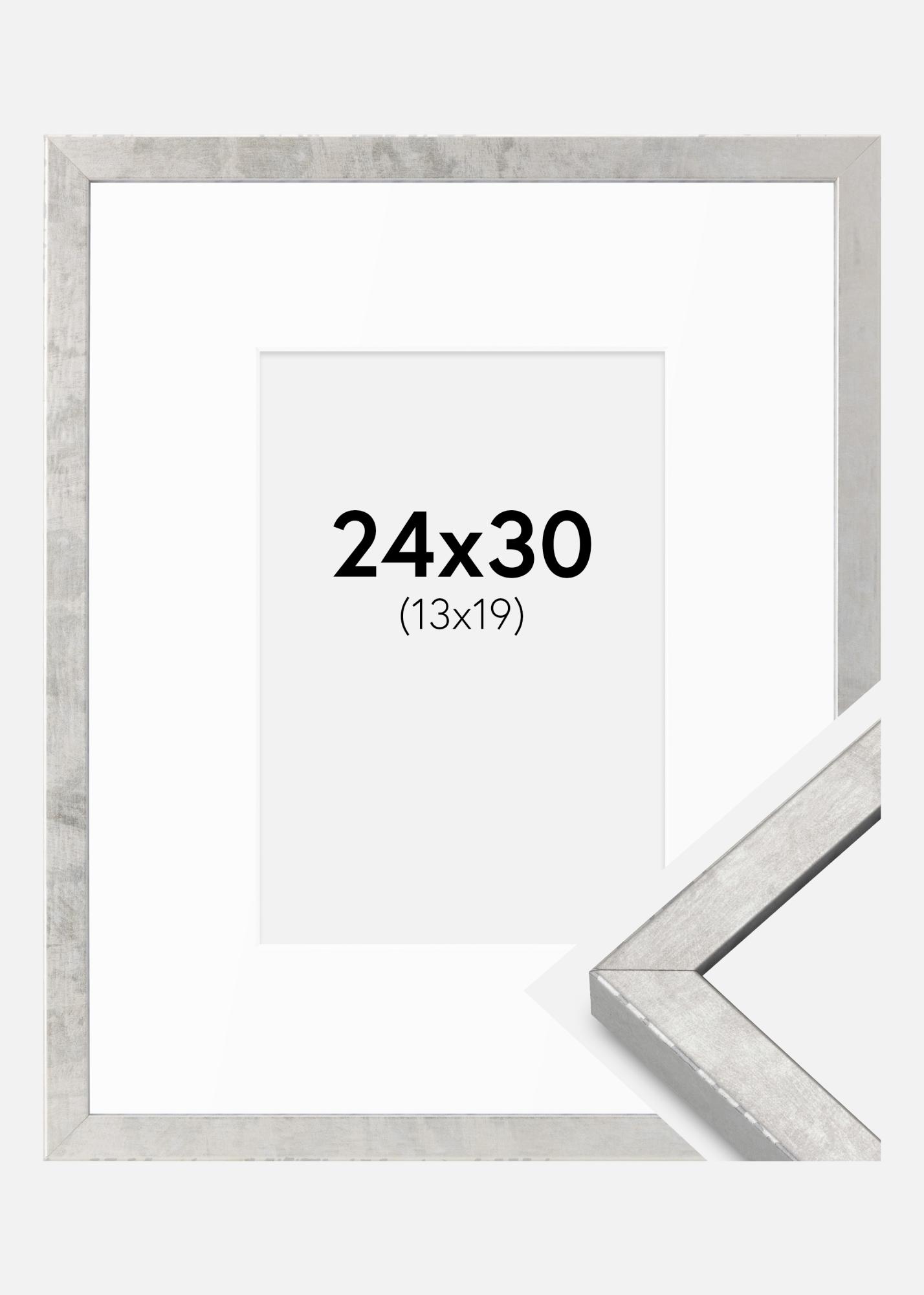 Ramme Ares Sølv 24x30 cm - Passepartout Hvit 14x20 cm