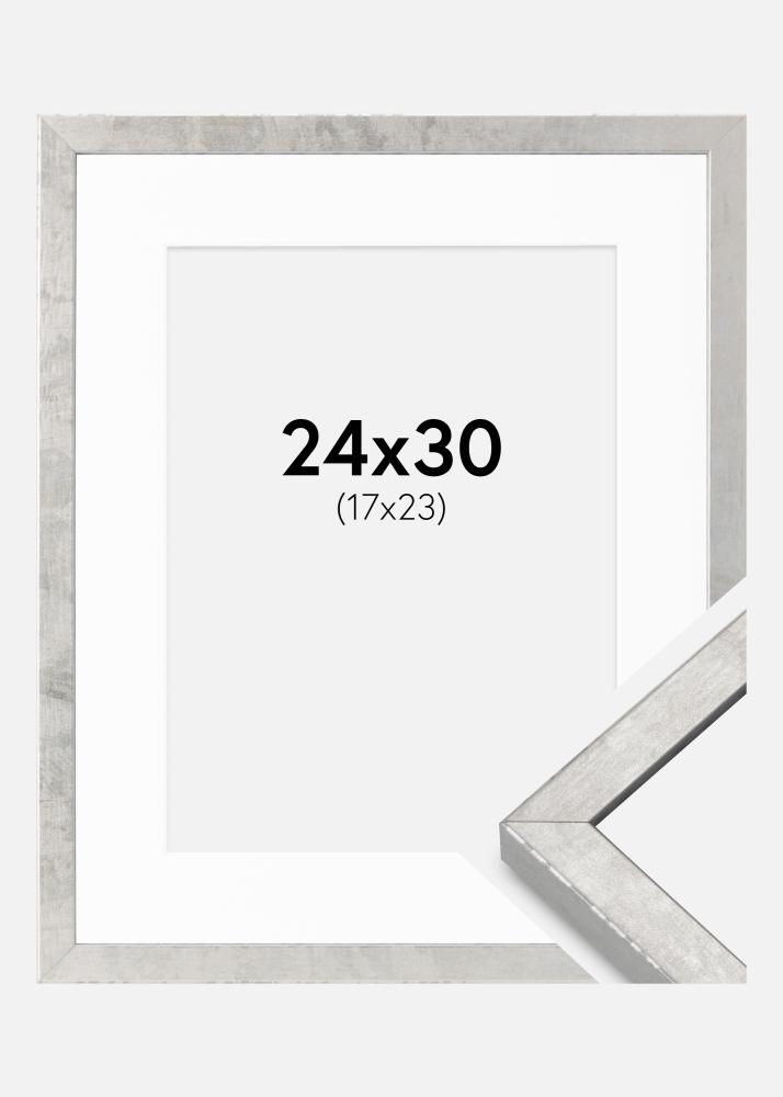 Ramme Ares Sølv 24x30 cm - Passepartout Hvit 18x24 cm