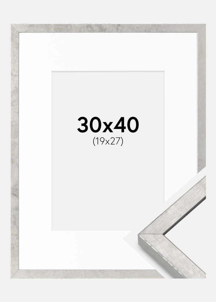 Ramme Ares Sølv 30x40 cm - Passepartout Hvit 20x28 cm