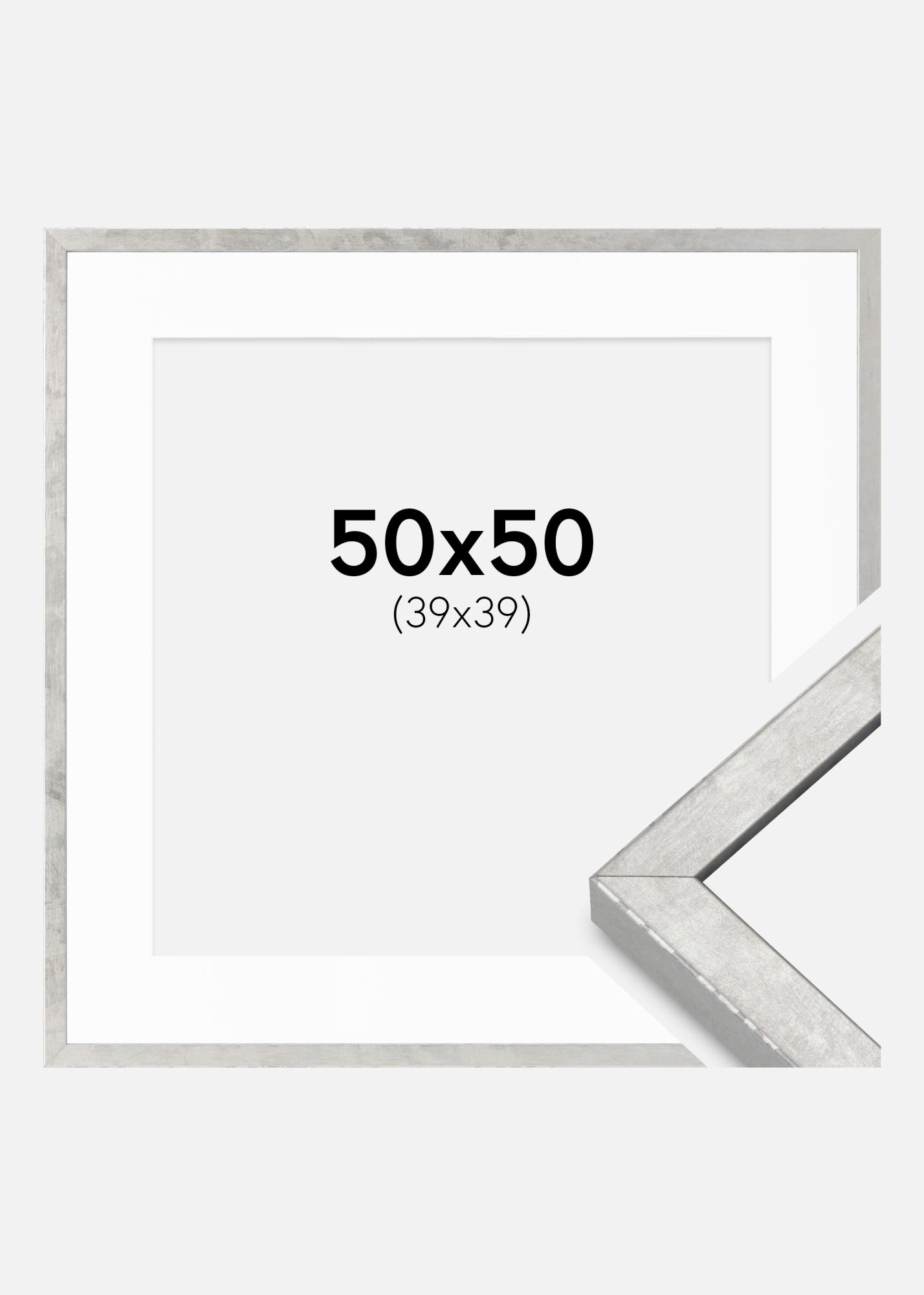 Ramme Ares Sølv 50x50 cm - Passepartout Hvit 40x40 cm