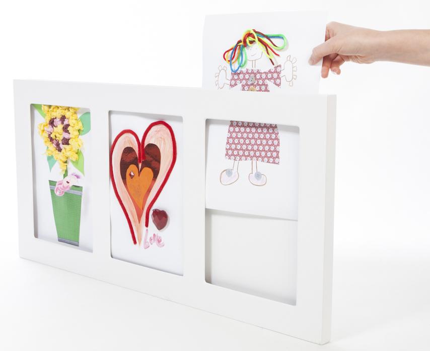 Rammer til barnas tegninger er en perfekt personlig presang å gi bort til slekt og venner, eller til kunstneren selv for å pynte veggene på sitt eget rom. Uansett kommer det til å være en verdsatt gave som passer i alle hjem. Takket være at rammen ikke har noe glass, kan barna skape vakker 3D-kunst og lage et bilde ved hjelp av papirbiter, perler eller piperensere. Bare fantasien setter grenser.