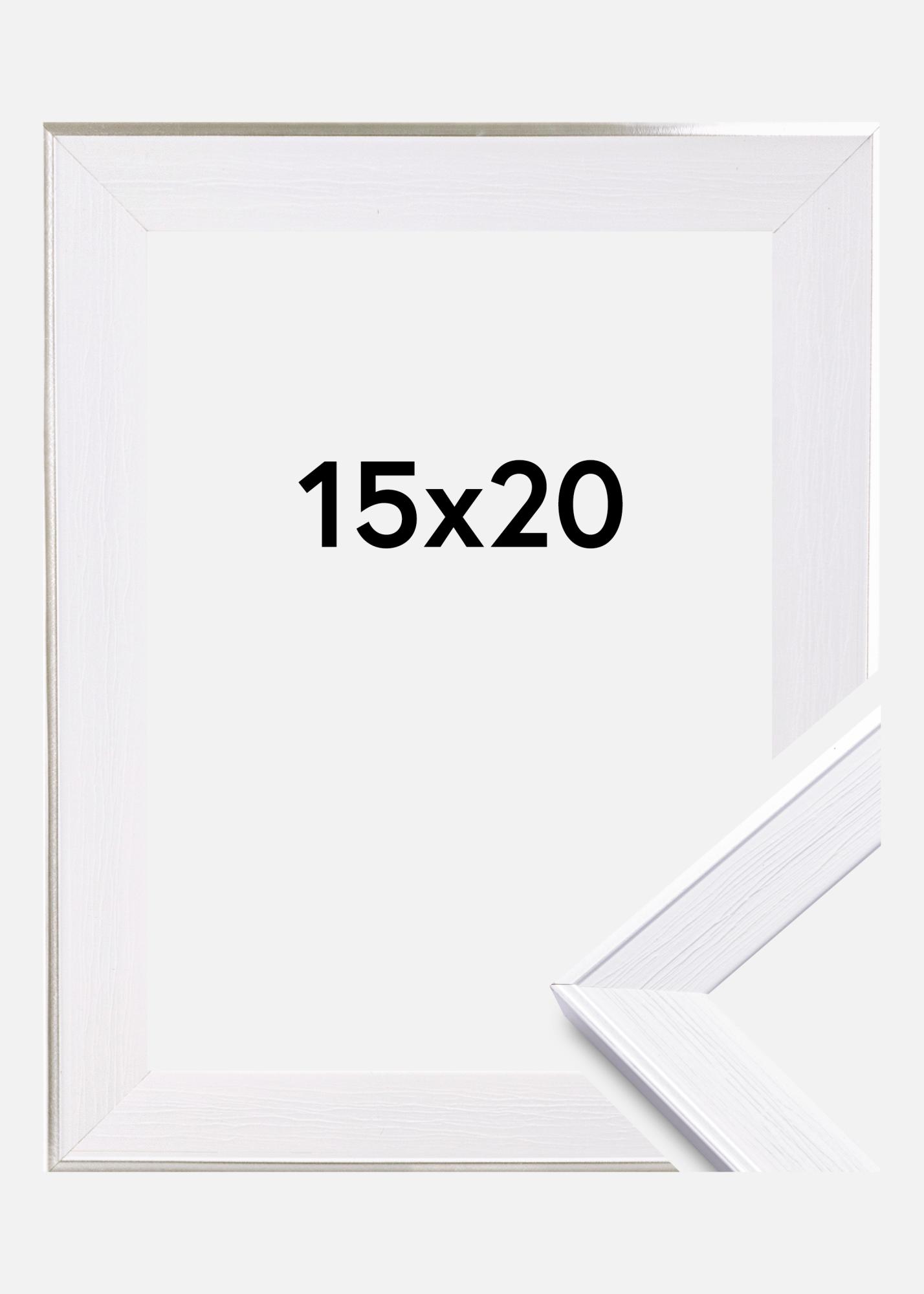 Med målene 15 x 20 cm passer denne rammen perfekt for standardfotografier og mindre kunstverk. Den kremfargede indre kanten kompletterer den sølvfargede kanten og skaper en interessant visuell effekt som fanger betrakterens øye. Enten du plasserer den på en hylle, skrivebord eller henger den på veggen, vil denne rammen gi ditt rom en personlig og elegant følelse.