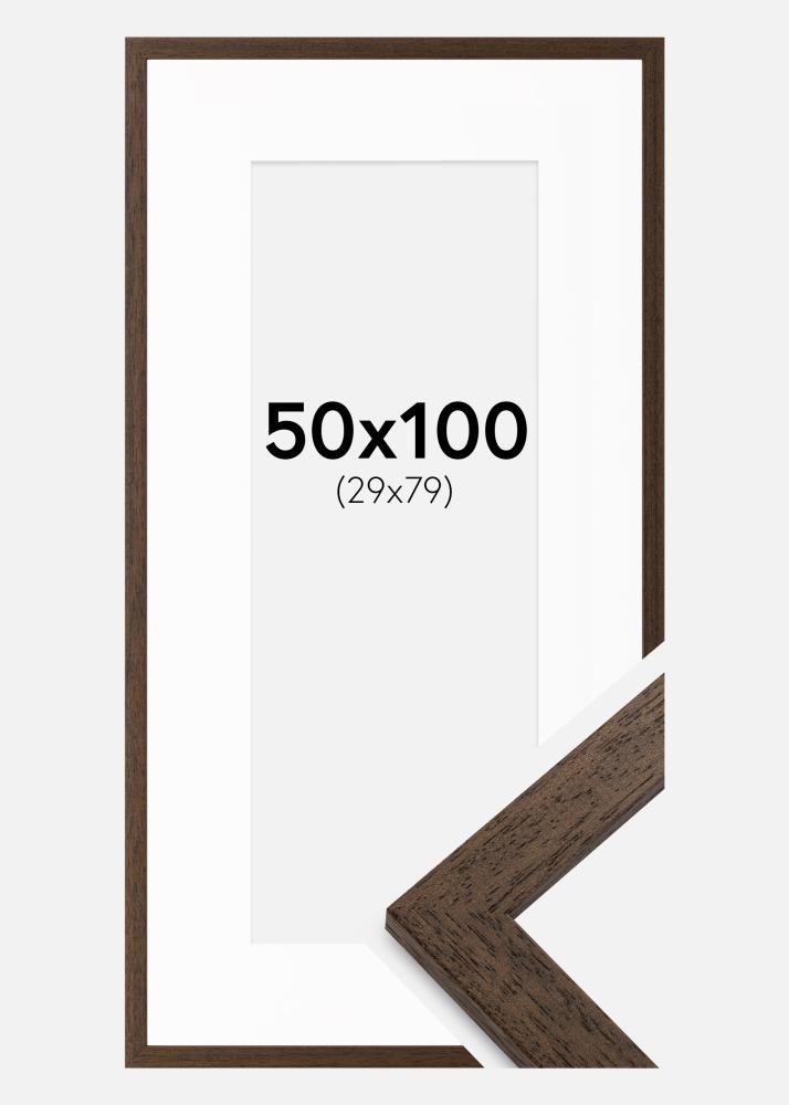 Ramme Brown Wood 50x100 cm - Passepartout Hvit 30x80 cm
